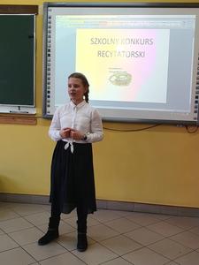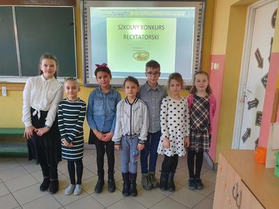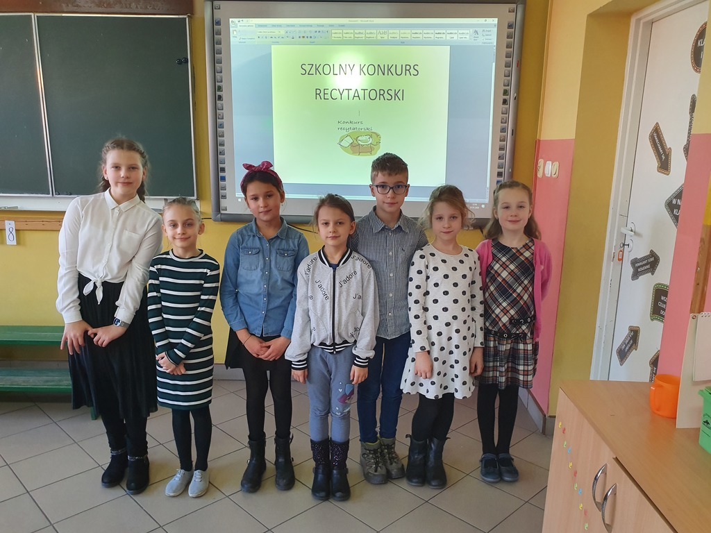 W naszej szkole 7 stycznia odbył się I etap konkursu recytatorskiego. W konkursie wzięło udział 7 uczniów z klas I-III.
