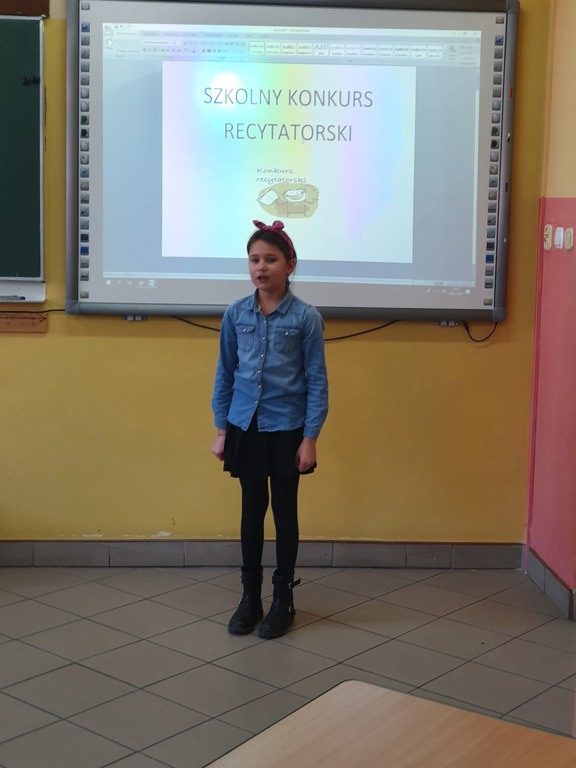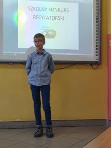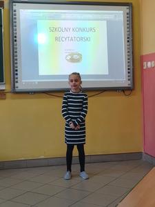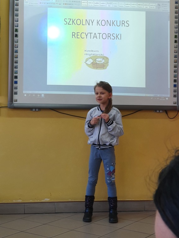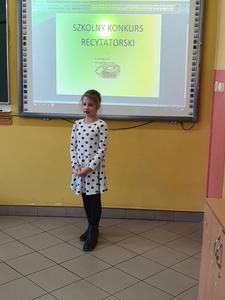 Dzieci zaprezentowały teksty poetyckie i prozatorskie. Do półfinału zakwalifikowali się: Grzegorz Ulka z klasy IIIa i Iga Kuzia z klasy Ic. Półfinał odbędzie się 18.01.2020r. w Poznaniu.
