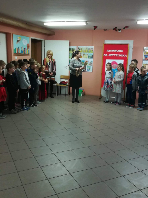 W piątek 24 stycznia szkolna biblioteka przyjęła w szeregi czytelników pierwszoklasistów. Pani bibliotekarka przedstawiła dzieciom zasady korzystania z wypożyczalni książek, po czym Pani wicedyrektor Iwona Domańska pasowała kluczem do wiedzy uczniów na czytelników. Teraz już dzieci mogą samodzielnie korzystać z księgozbioru biblioteki. Zachęcamy do wypożyczania i czytania książek, które rozwijają Waszą wyobraźnię i sprzyjają nauce.