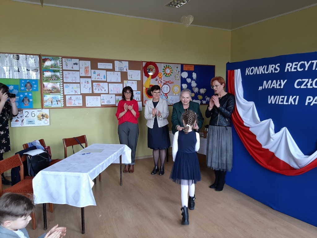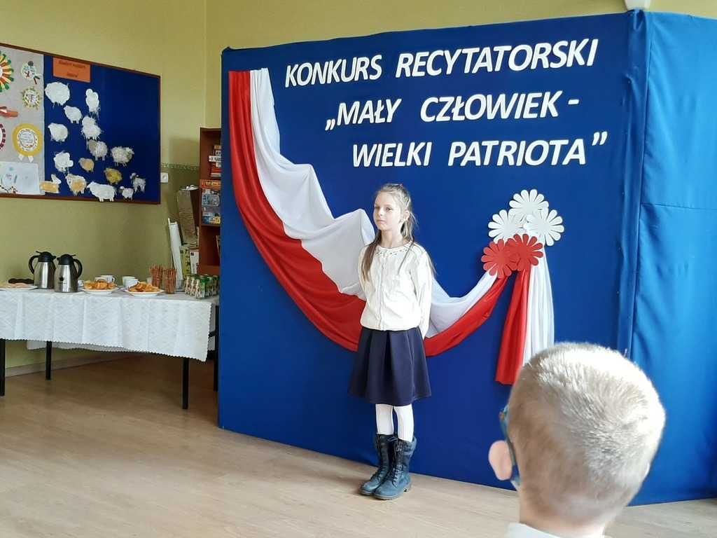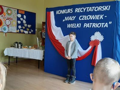 W środę 26 lutego br. troje uczniów z klas pierwszych brało udział w konkursie recytatorskim "Mały człowiek- Wielki Patriota", organizowanym przez Szkołę Podstawową w Mokronosie. Uczniowie prezentowali przygotowane wiersze o tematyce patriotycznej.
