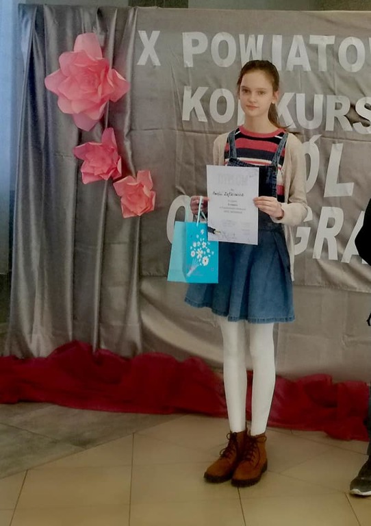 20 lutego 2020 roku uczennica naszej szkoły Amelia Ziętkiewicz zajęła II miejsce w Powiatowym Konkursie KRÓL ORTOGRAFII, który odbył się w Roszkach. Jak podkreślała przewodnicząca komisji, uczestnicy zaprezentowali bardzo wysoki poziom umiejętności ortograficznych, dlatego niełatwo było wyłonić zwycięzcę! Gratulujemy Amelii bardzo serdecznie i życzymy kolejnych sukcesów!