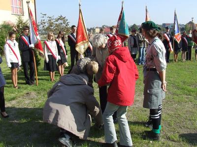 Wzruszający fragment pieśni „Śpij kolego w ciemnym grobie” zagrany na trąbce przez Teofila Plutę był znakiem tego, że uroczystość posadzenia Dębów Katyńskich dobiegła końca.