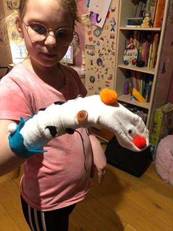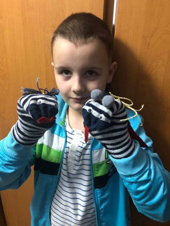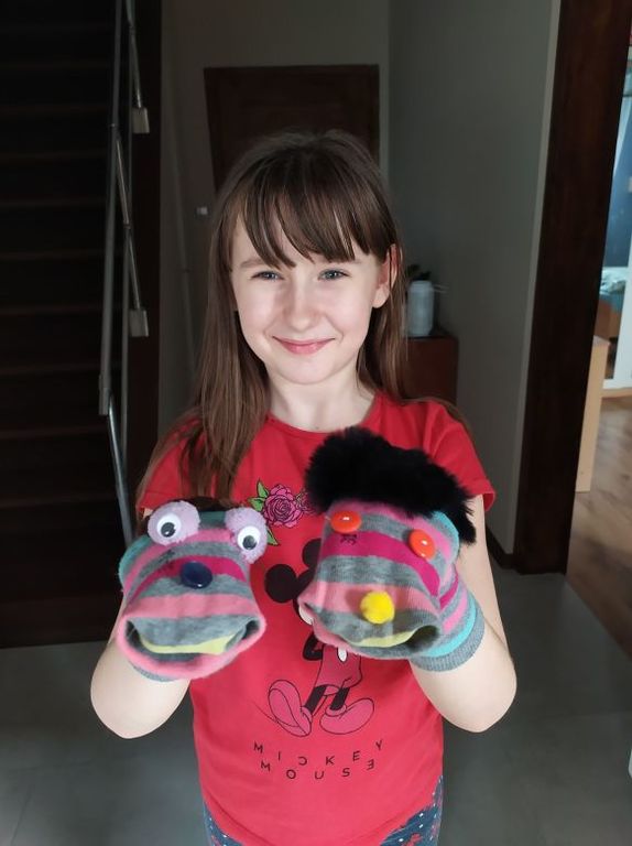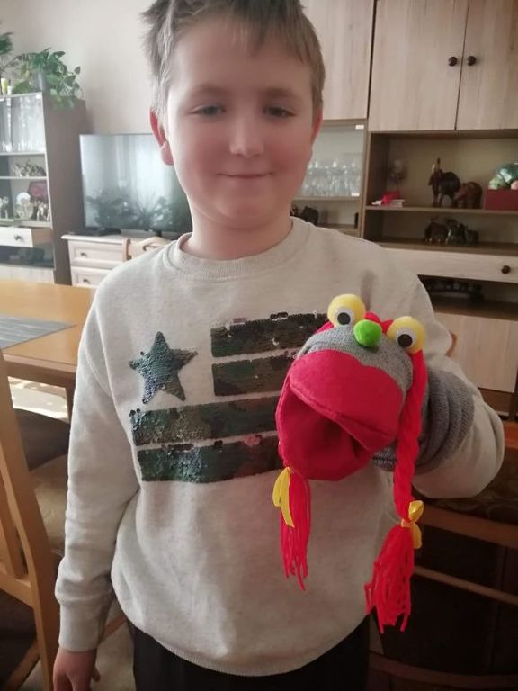 Wspieramy akcję i nasz proces kreatywnego myślenia poprzez wykonanie skarpetkowych pacynek. Mimo obecnie występujących trudności dzieci z pomocą rodziców i rodzeństwa wspaniale poradziły sobie z tym zadaniem.