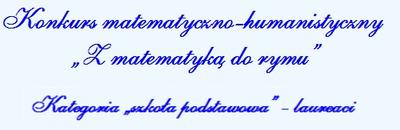 Uczniowie z naszej szkoły zostali laureatami ogólnopolskiego konkursu matematyczno-humanistycznego „Z matematyką do rymu”, który został zorganizowany przez Centrum Popularyzacji Matematyki „SIGNUM” oraz Białostocki Oddział Polskiego Towarzystwa Matematycznego.
