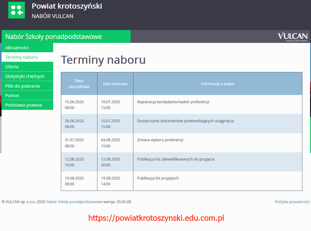 Rekrutacja 2020 do szkół ponadpodstawowych Zdjęcia Załączniki rekrutacja_2020krotoszyn_v3.pdf [1.65 MB] Zobacz również Uruchomienie funkcjonowania szkoły Laureaci ogólnopolskiego konkursu matematyczno-humanistycznego... NABÓR UZUPEŁNIAJĄCY DO SEKCJI PIŁKI NOŻNEJ Rekrutacja 2020 do szkół ponadpodstawowych KONSULTACJE KLAS VIII 28 maja 2020 rok DNI WOLNE OD ZAJĘĆ DYDAKTYCZNYCH 26 maja 2020 Aktualności Wydrukuj Udostępnij Wyświetlono: 248