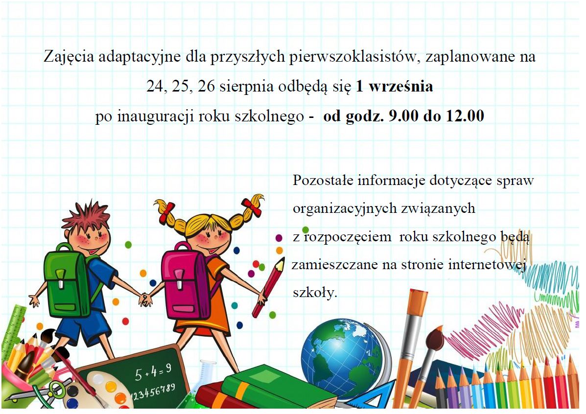 Komunikat - zmiana terminu zajęć adaptacyjnych Zdjęcia Zobacz również Wyprawka pierwszoklasisty 2020/2021 Podziękowanie UCZCILIŚMY 100. ROCZNICĘ BITWY WARSZAWSKIEJ Komunikat - zmiana terminu zajęć adaptacyjnych WAŻNE INFORMACJE KOMUNIKAT NR 1 20 sierpnia 2020 Aktualności Wydrukuj Udostępnij Wyświetlono: 327
