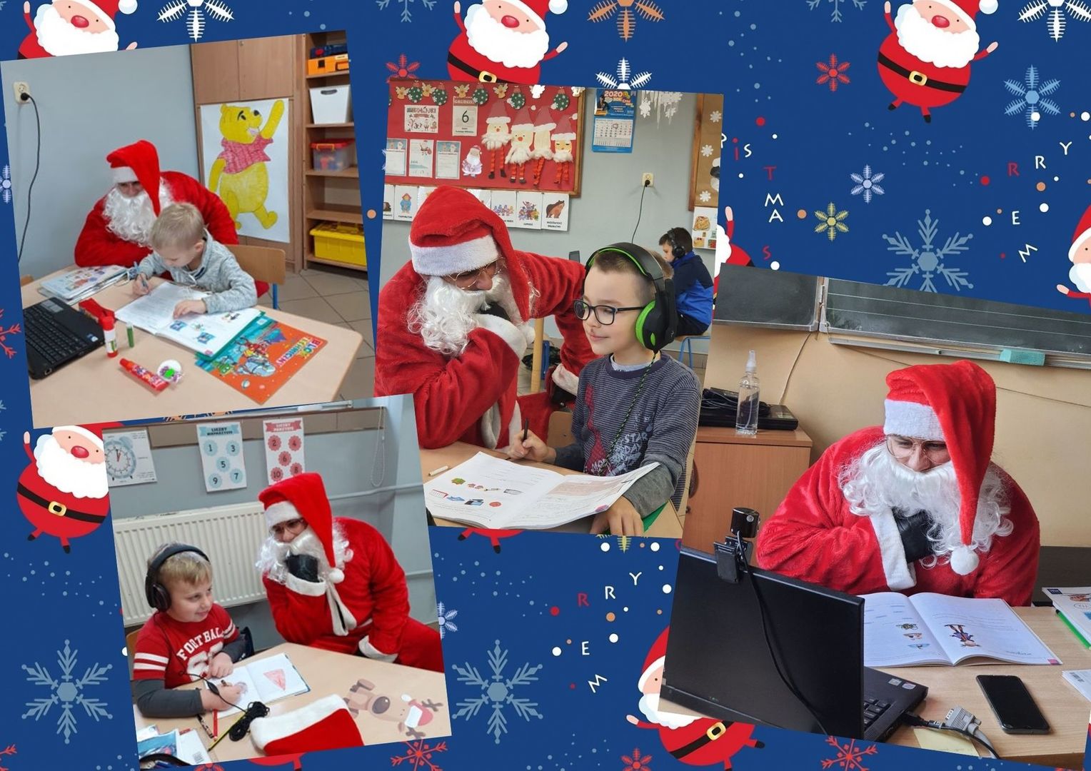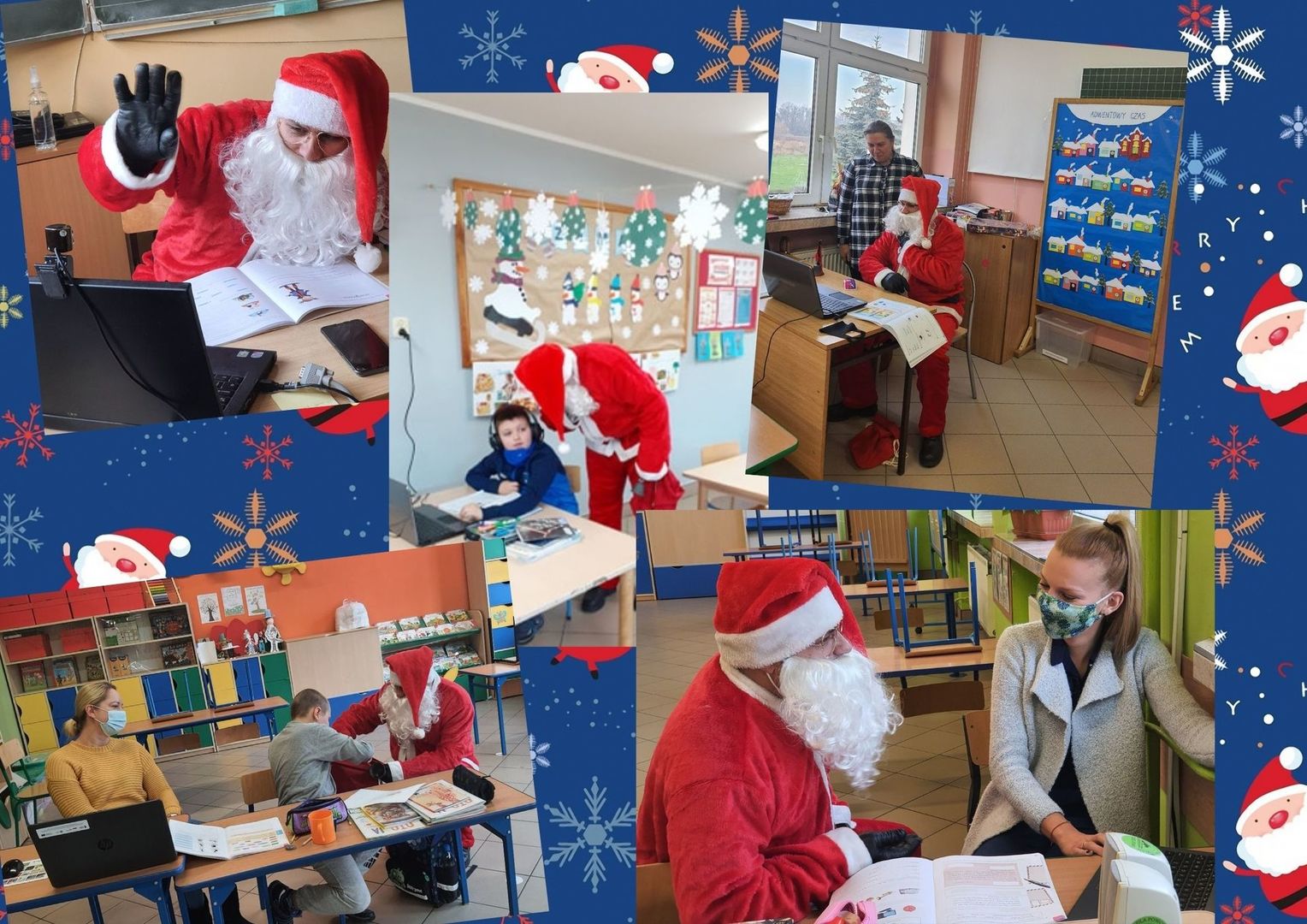 Mikołaj odwiedził uczniów Szkoły Podstawowej nr 3 im. Kornela Makuszyńskiego w Koźminie Wielkopolskim stacjonarnie jak
