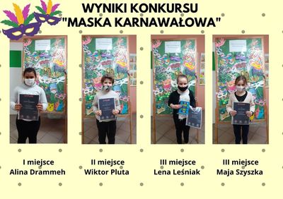 Wyniki konkursu "Maska Karnawałowa" Zdjęcia Zobacz również Zespół Szkół Ponadpodstawowych im. Józefa Marcińca... Ruszyły zapisy Zajęcia o tematyce zimowej w klasie IB Wyniki konkursu "Maska Karnawałowa" KOMUNIKAT DYREKTORA SZKOŁY Dzień Składanki i Łamigłówki 11 lutego 2021 Aktualności Wydrukuj Udostępnij Wyświetlono: 234