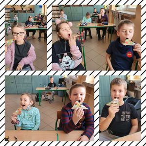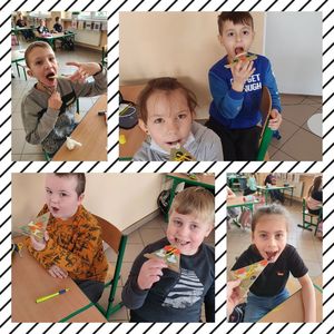 Dnia 9 lutego w klasie 1B obchodziliśmy Międzynarodowy Dzień Pizzy. Uczniowie dowiedzieli się jaki kraj jest królestwem pizzy, poznali flagę Włoch oraz bawili się przy włoskiej muzyce. Ale najważniejsza w tym dniu była właśnie PIZZA! Mimo, że tylko papierowa – rozbudziła apetyty.