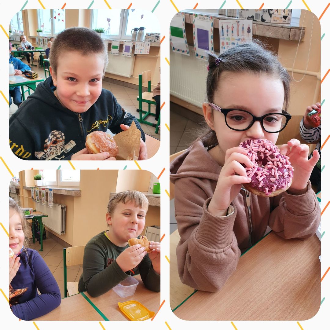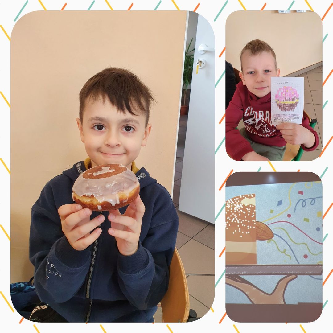 Jak tradycja nakazuje 11.02.2021 roku uczniowie klasy 1B świętowali TŁUSTY CZWARTEK. Każdy doskonale wie, że w tym dniu nie sposób obyć się bez smakowitego pączka. Dlatego każdy rodzic przygotował swojemu dziecku przepyszny pączek na drugie śniadanie.