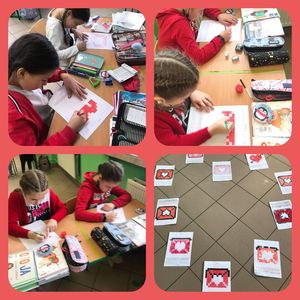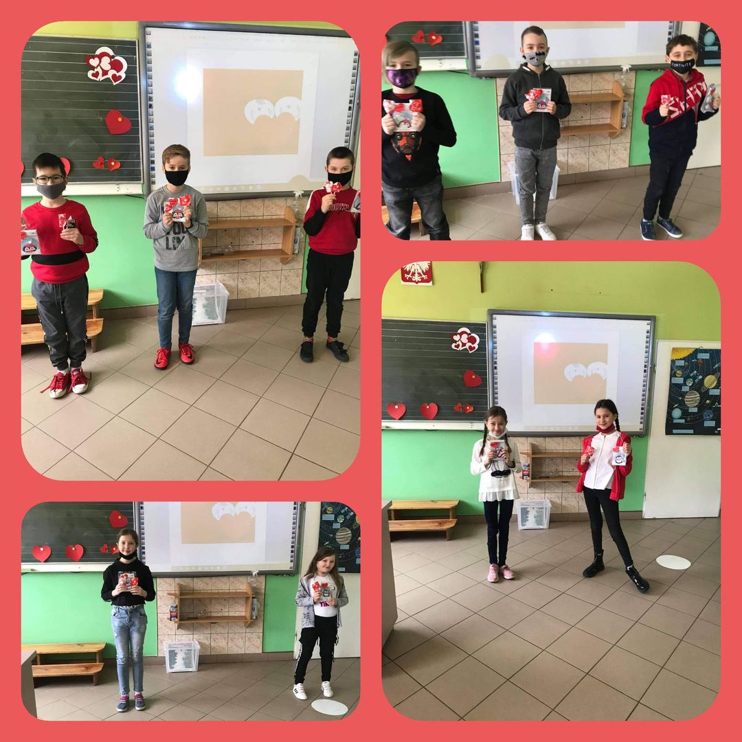 Klasy I-III i świetlica szkolna obchodziły Walentynki. Tego dnia w szkole królował kolor czerwony. Wszędzie pojawiły się ozdoby w kształcie serc. Wszyscy uczniowie mogli przesłać sobie kartki walentynkowe, dzięki specjalnie utworzonej walentynkowej poczcie. Kartki z życzeniami trafiły do adresatów. Każdy z niecierpliwością czekał na swój list. Mnóstwo miłych słów i pozytywny przekaz wprawił społeczność uczniowską w doskonały nastój.