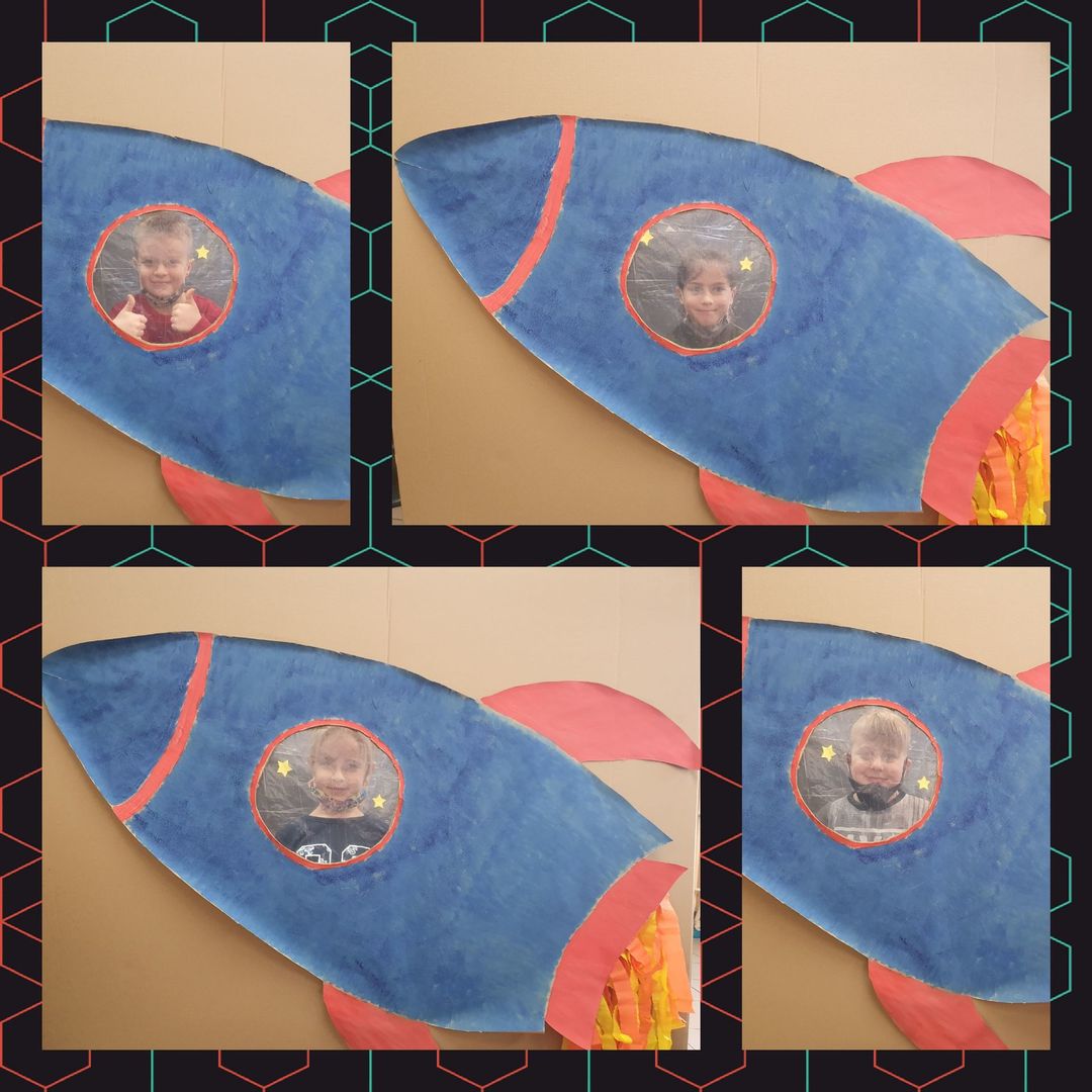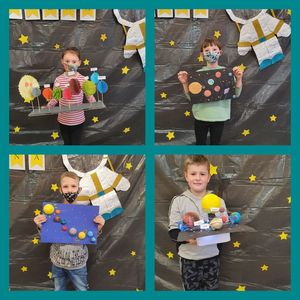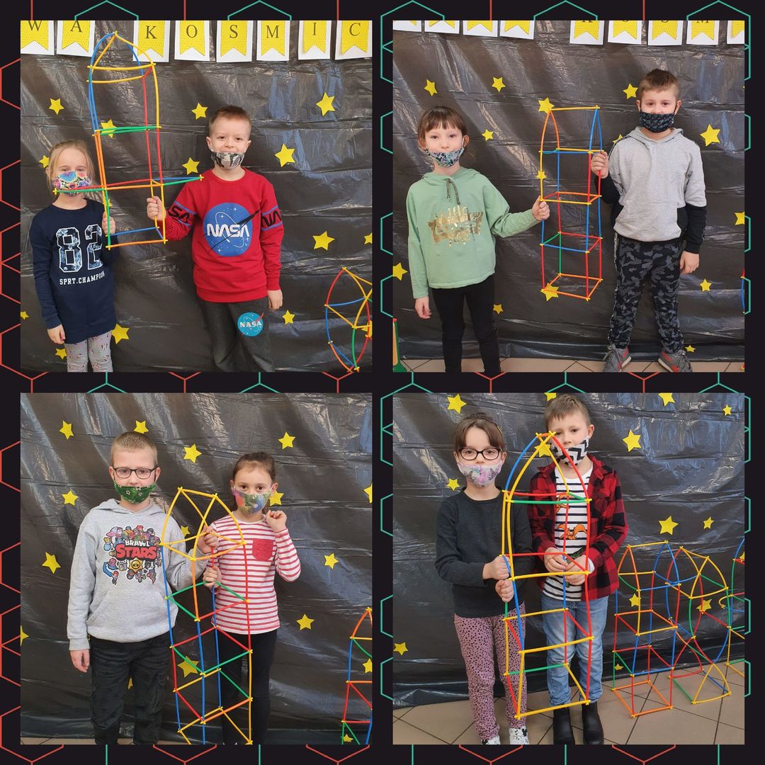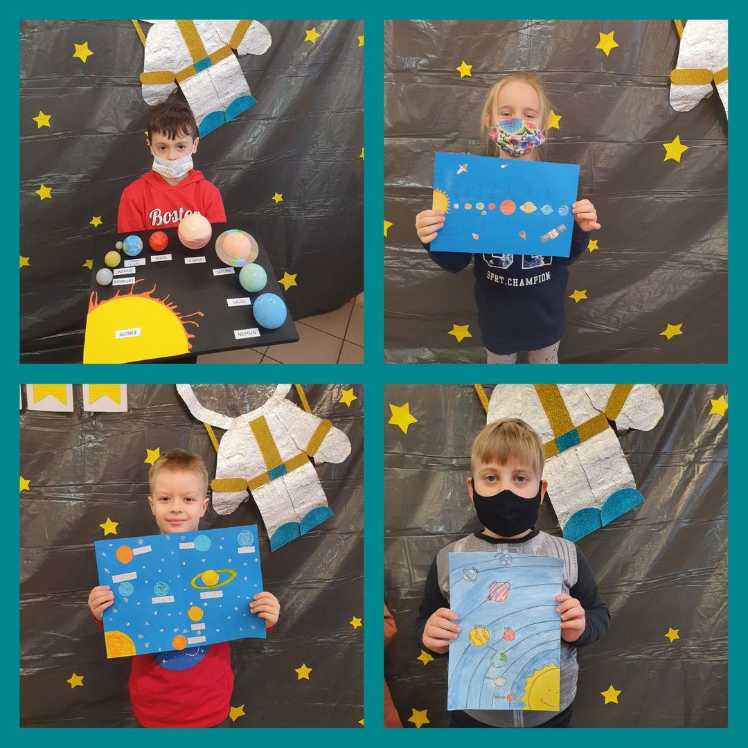 Pierwszaki wiedzą jak nazywa się miejsce, w którym znajduje się Słońce i planety, czym jest Słońce, co robią planety w stosunku do Słońca, ile planet krąży wokół Słońca. Potrafią podać nazwy planet i wiedzą, którą planetą od Słońca jest Ziemia. Stworzyły przepiękne Układy Słoneczne, a także konstruowały rakiety kosmiczne. Po włożeniu na głowy hełmów, uczniowie klasy 1b wyruszyli w kosmiczną przestrzeń. Wyprawa zakończyła się sukcesem. Dzieci całe i zdrowe powróciły na Ziemię. Wiadomości o kosmicznej przestrzeni bez wątpienia pozostaną na długo w pamięci pierwszoklasistów.