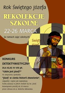 Szkolne rekolekcje wielkopostne w tym roku przeprowadzą katecheci z wykorzystaniem własnych środków teleinformatycznych oraz narzędzi teleinformatycznych do nauki zdalnej z jakich korzysta szkoła podczas planowych zajęć lekcyjnych czyli platforma Microsoft Teams i Librus.