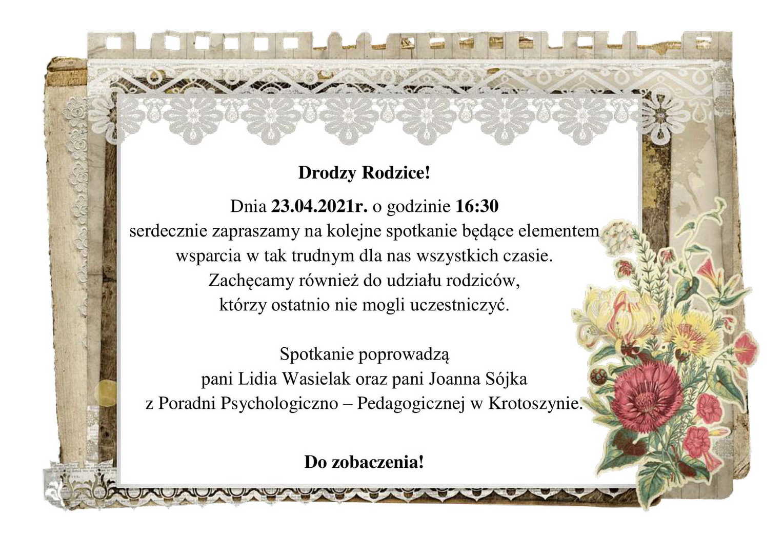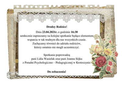 Spotkanie z Rodzicami Zdjęcia Zobacz również 14 kwietnia - Święto Chrztu Polski UDZIAŁ W PROJEKCIE Nauczanie zdalne w klasach I-VIII Spotkanie z Rodzicami Konkurs dla klas I-III i IV-VIII DZIECI - UCZĄ RODZICÓW - PROJEKT 16 kwietnia 2021 Aktualności Wydrukuj Udostępnij Wyświetlono: 150