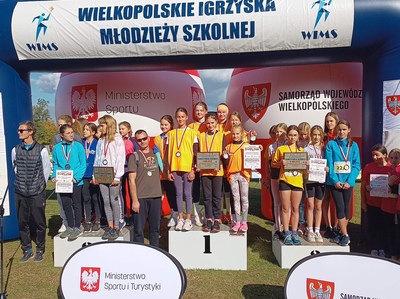 Kolejny udany start w zawodach zaliczyły 12 października nasze biegaczki w Poznaniu. Były to XXIV Wielkopolskie Igrzyska Młodzieży Szkolnej w sztafetowych biegach przełajowych. Dziewczęta pobiegły rewelacyjnie i zdobyły 1 miejsce! W druzynowych zawodach wzięły udział: Agata Matuszak, Gabriela Kowalska, Samanta Ostoj, Zofia Idkowiak, Magdalena Stanisławska, Lena Maciejewska i Blanka Kuzia.