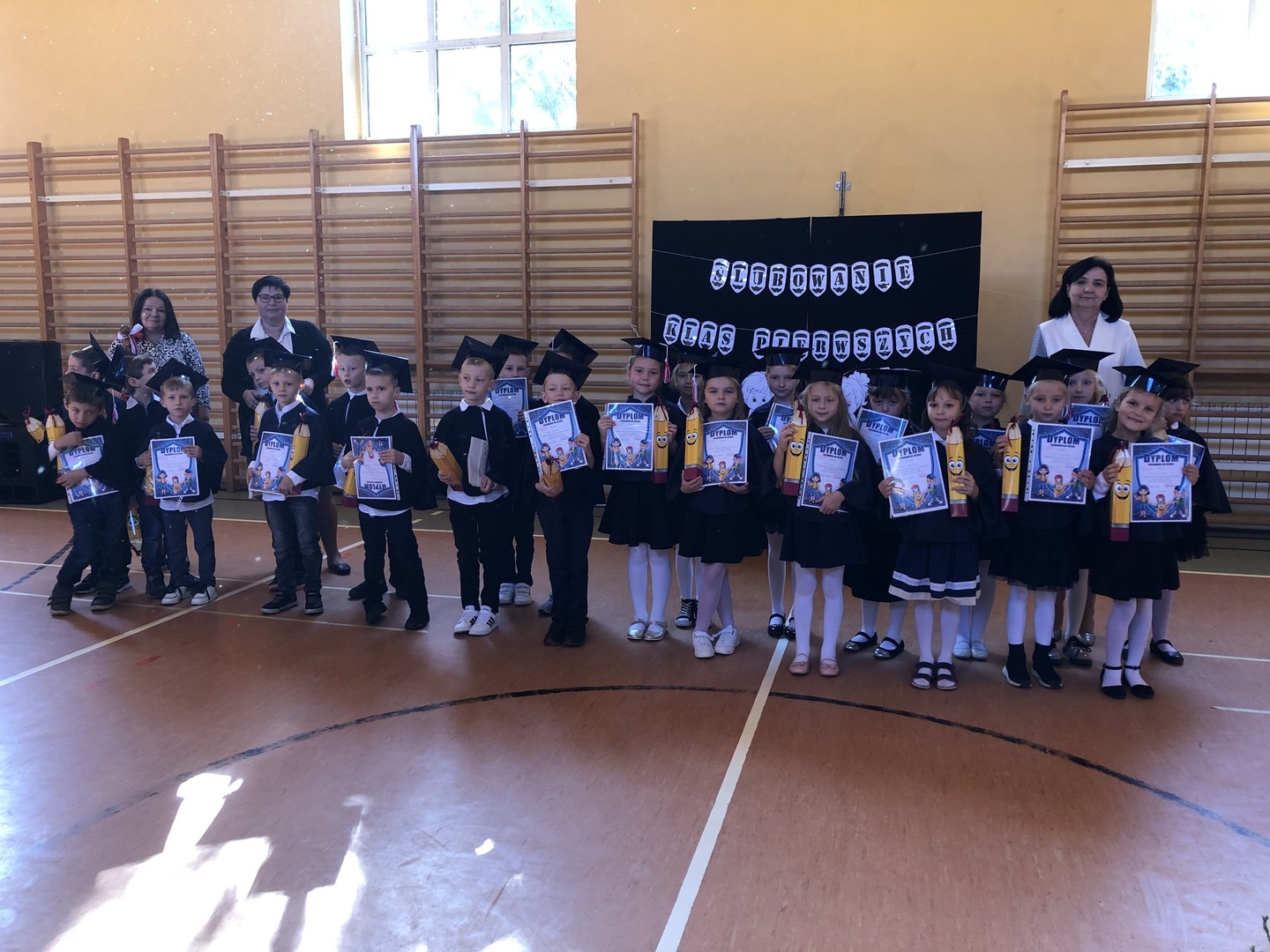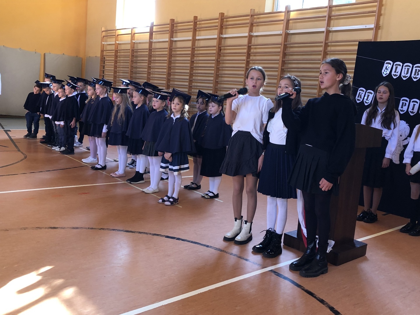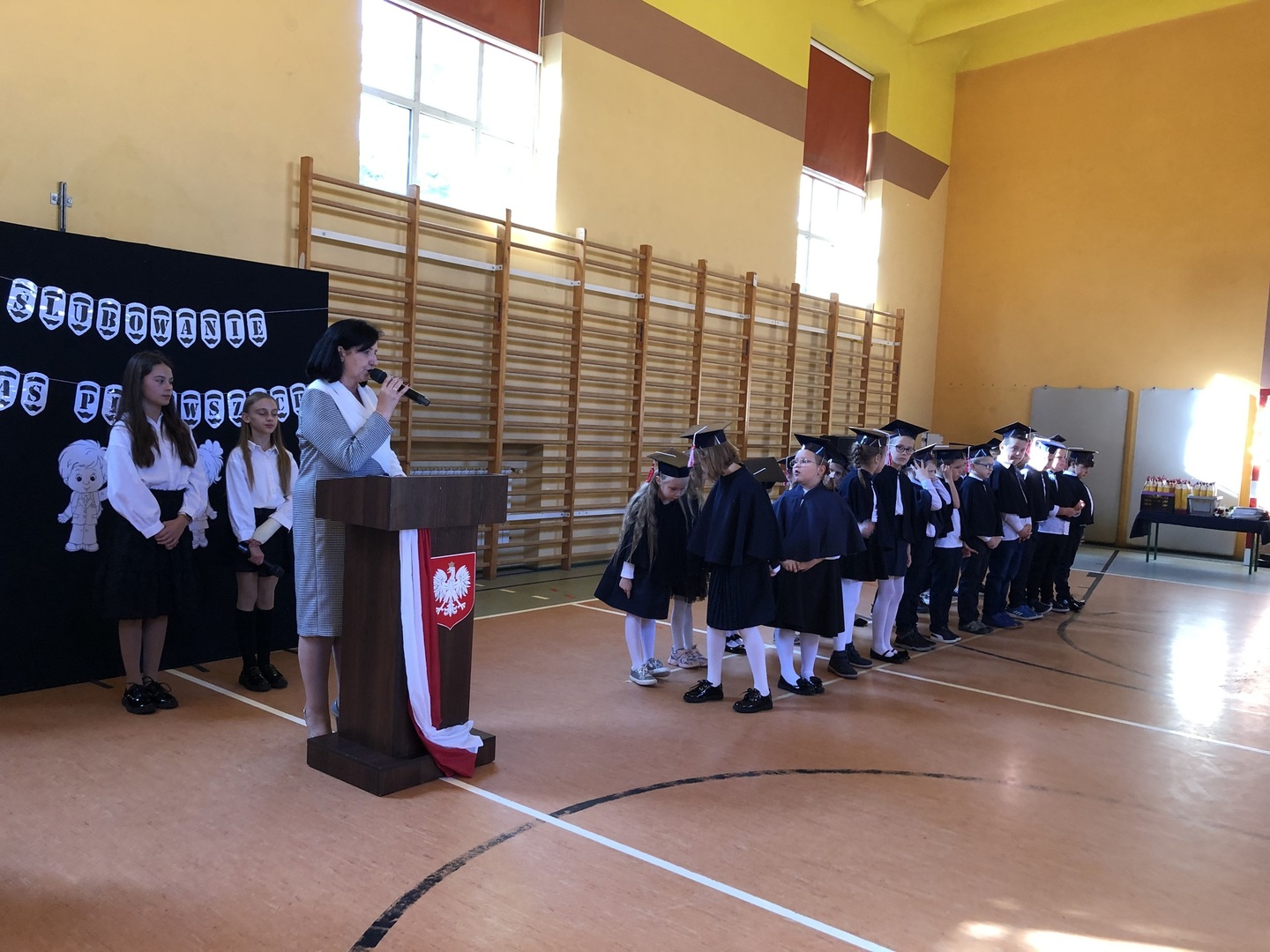 13 października 2022 roku odświętnie ubrane dzieci, stanęły przed obliczem dyrekcji szkoły i rodziców. Dzieci musiały udowodnić, że zasługują na miano uczniów naszej szkoły, dlatego zostały poddane niełatwym zadaniom. Między innymi rozwiązywały zagadki zadawane przez rodziców. Szybko okazało się, że dzieci potrafiły udzielić właściwych odpowiedzi. Wykazały się również doskonałą znajomością obowiązujących w szkole „zasad dobrego zachowania”, o które pytała je wicedyrektor szkoły pani Iwona Domańska. Udowodniły, że są patriotami, odpowiadając na pytania dyrektor szkoły pani Arlety Szkudlarek. Zdaniem wszystkich obecnych na sali, dzieci sprostały zadaniom, więc mogły złożyć uroczyste ślubowanie. Symbolicznego pasowania na ucznia poprzez dotknięcie ramienia ołówkiem dokonała pani wicedyrektor. Świadkami tego wydarzenia byli dumni z nich rodzice. W dowód uznania uczniowie klas pierwszych otrzymali przygotowane przez nich pamiątkowe dyplomy i wspaniałe upominki sfinansowane przez Radę Rodziców. Po tej pięknej uroczystości, klasy pozowały do wspólnej fotografii. Ten dzień z pewnością na długo zapisze się w ich pamięci.