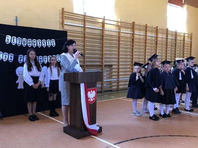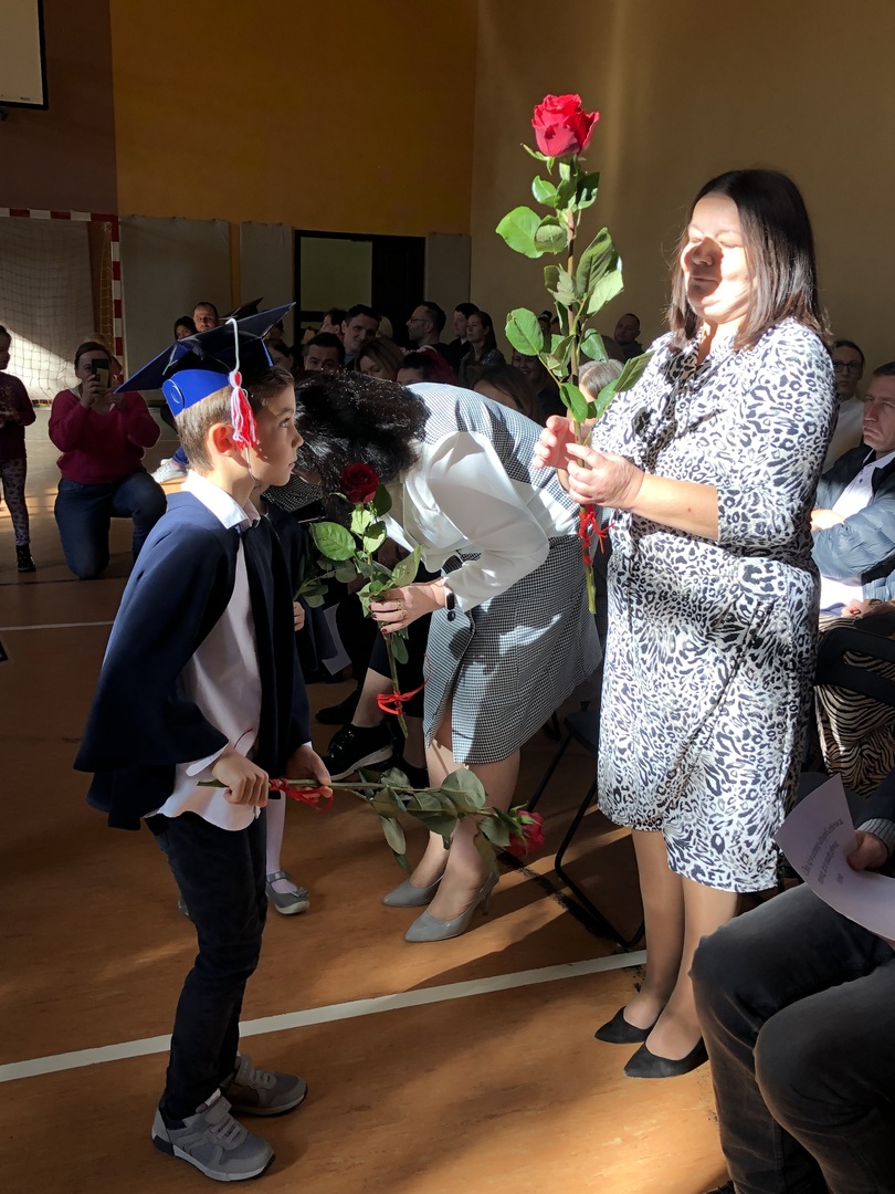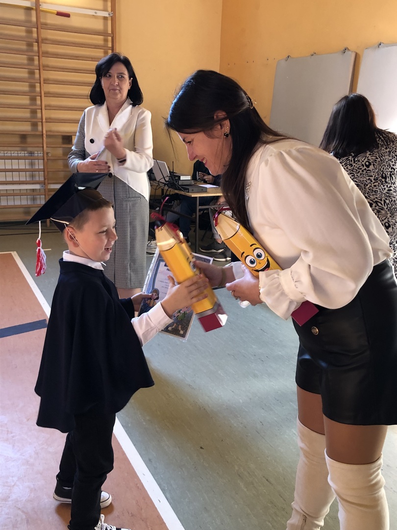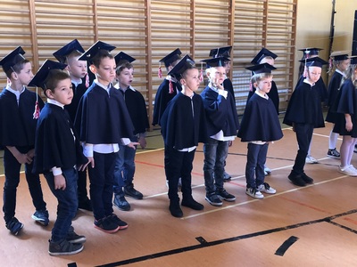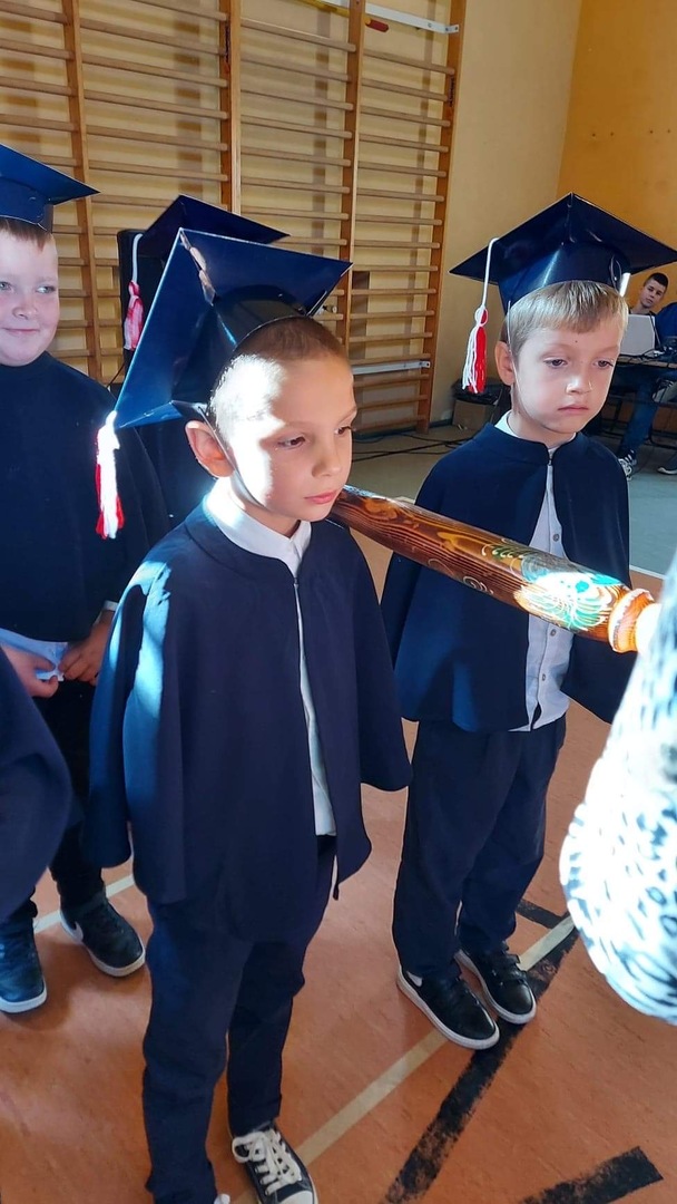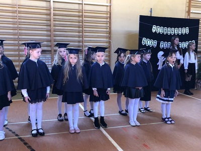 13 października 2022 roku odświętnie ubrane dzieci, stanęły przed obliczem dyrekcji szkoły i rodziców. Dzieci musiały udowodnić, że zasługują na miano uczniów naszej szkoły, dlatego zostały poddane niełatwym zadaniom. Między innymi rozwiązywały zagadki zadawane przez rodziców. Szybko okazało się, że dzieci potrafiły udzielić właściwych odpowiedzi. Wykazały się również doskonałą znajomością obowiązujących w szkole „zasad dobrego zachowania”, o które pytała je wicedyrektor szkoły pani Iwona Domańska. Udowodniły, że są patriotami, odpowiadając na pytania dyrektor szkoły pani Arlety Szkudlarek. Zdaniem wszystkich obecnych na sali, dzieci sprostały zadaniom, więc mogły złożyć uroczyste ślubowanie. Symbolicznego pasowania na ucznia poprzez dotknięcie ramienia ołówkiem dokonała pani wicedyrektor. Świadkami tego wydarzenia byli dumni z nich rodzice. W dowód uznania uczniowie klas pierwszych otrzymali przygotowane przez nich pamiątkowe dyplomy i wspaniałe upominki sfinansowane przez Radę Rodziców. Po tej pięknej uroczystości, klasy pozowały do wspólnej fotografii. Ten dzień z pewnością na długo zapisze się w ich pamięci.