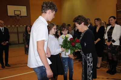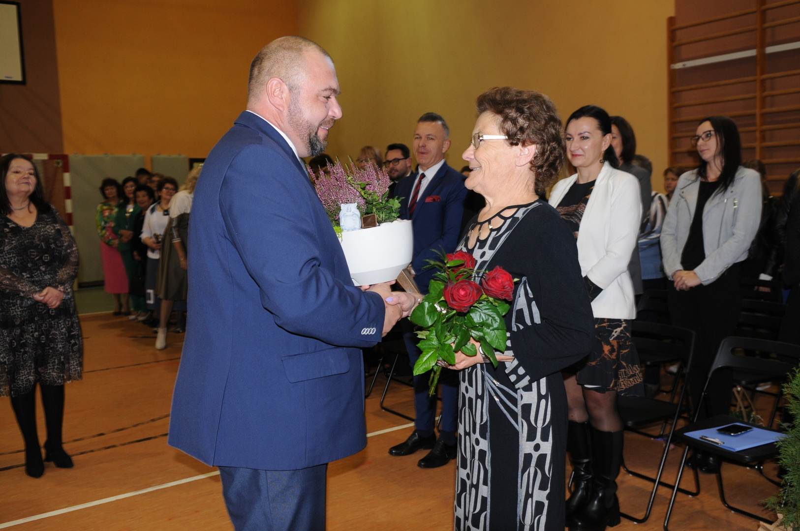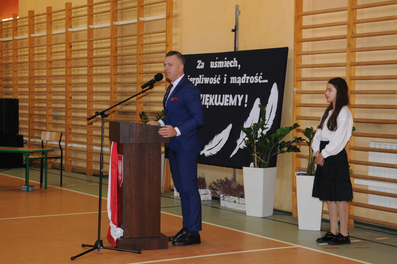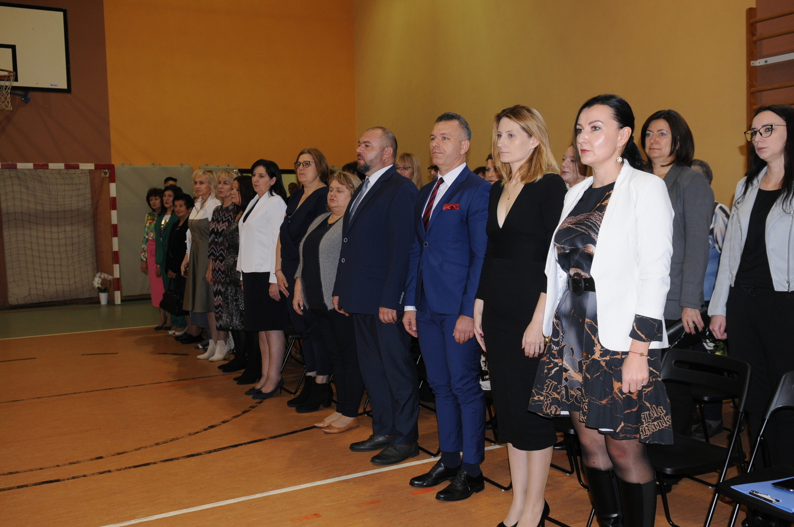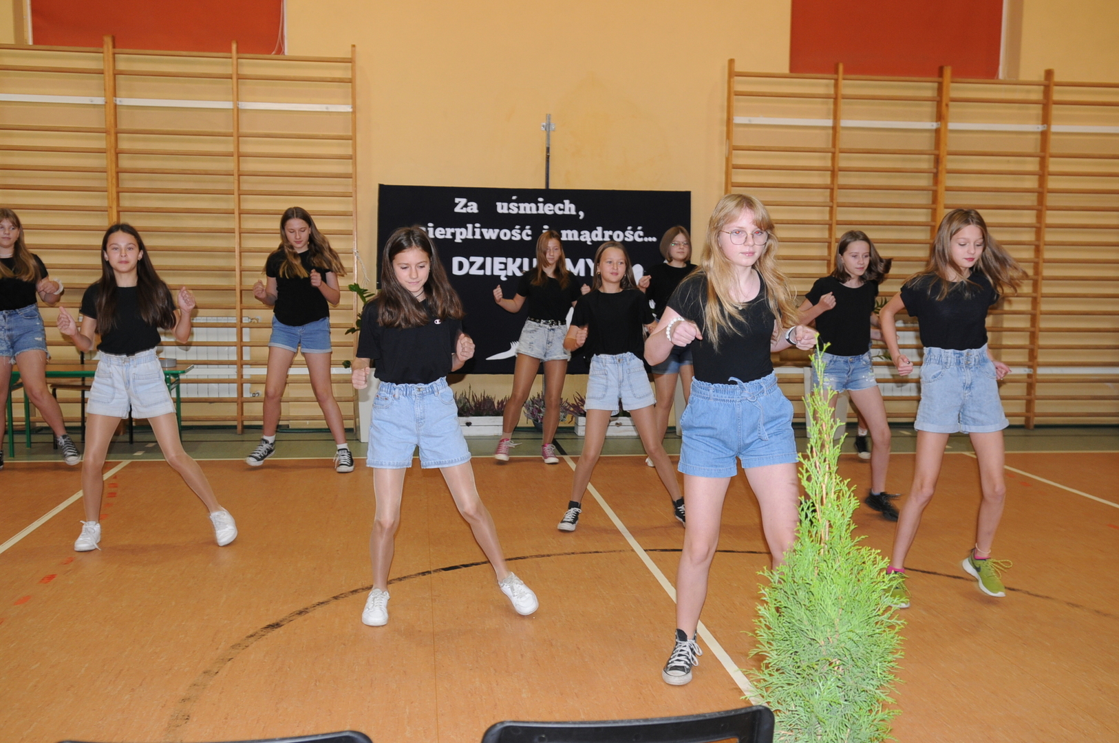 Dziś społeczność szkolna obchodziła Dzień Edukacji Narodowej. Podczas akademii pani dyrektor Arleta Szkudlarek złożyła Nauczycielom, Pracownikom szkoły i emerytowanym Nauczycielom najserdeczniejsze życzenia - dużo radości i satysfakcji z wykonywanej pracy. Życzenia złożyli także zaproszeni goście: Przewodniczący Rady Rodzicow Arkadiusz Lisek i radny Rady Miejskiej Karol Jankowiak. W Dniu Edukacji dyrekcja podziękowała za pracę pani Krystynie Krajce, która odchodzi na zasłużoną emeryturę. Dzieci wyraziły swoją wdzieczność za trud pracy dydaktycznej i wychowawczej piosenką i tańcem. W humorystycznych scenkach przenieśliśmy się do sytuacji z życia codziennego szkoły.