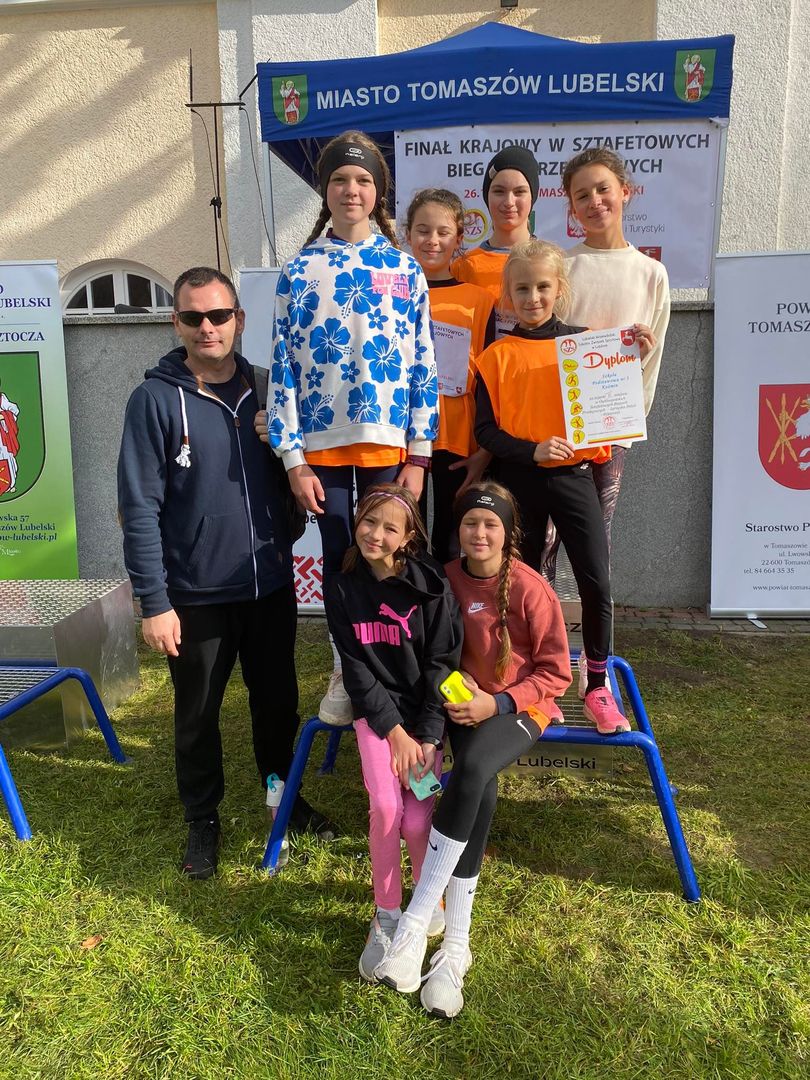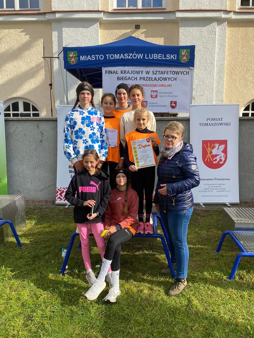 26 października drużyna dziewczat wraz z trenerem panem Ł. Mikołajczykiem i opiekunką panią I. Domagałą wzięła udział w Finale Krajowym w Sztafetowych Biegach Przełajowych. Dziewczęta, wygrywajac wcześniej Mistrzostwa Wielkopolski, zostały zakwalifikowane do zawodów ogólnopolskich, które odbywały się w Tomaszowie Lubelskim. Zanim startowały, miały do pokonania trasę blisko 700 km. Nasze wojowniczki poradziły sobie dobrze w sztafecie i uplasowały się na dziewiatym miejscu w Polsce, wśród 17 drużyn wojewódzkich. Naszą sztafetę tworzyły biegaczki: Zofia Idkowiak, Samanta Ostoj, Agata Matuszak, Gabriela Kowalska, Magdalena Stanisławska, Blanka Kuzia, Maja Szyszka. Gratulujemy tak ogromnego sukcesu!