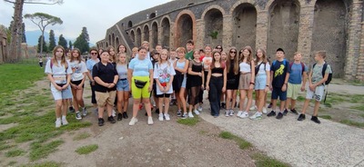 Jak wiadomo w zeszłym roku szkoła otrzymała Akredytację Erasmusa w sektorze Edukacja szkolna na lata 2021 – 2027. To program Unii Europejskiej w dziedzinie edukacji, który daje możliwość wymiany edukacyjnej. Wspiera uczniów i nauczycieli w realizacji projektów międzynarodowych oraz organizuje zagraniczne wyjazdy, aby poszerzyć kompetencje językowe i kulturowe. W zeszłym roku szkolnym mieliśmy możliwość wspólnej nauki z hiszpańskimi dziećmi w Maladze. Obecnie Pompeje otworzyły przed nami swoje gościnne drzwi. Wyruszyliśmy 9 października. Szansę na przeżycie niesamowitej przygody otrzymało 34 uczniów. Ciekawy program wypełnił nam całe dnie. Wzruszenie odebrało nam głos podczas powitania w szkole Santa Secondaria do Primo Grado E. Borrelli. Przez kolejne 7 dni to właśnie tutaj uczyliśmy się języka angielskiego, gry na instrumentach, śpiewu, tańca, programowania, współpracy.