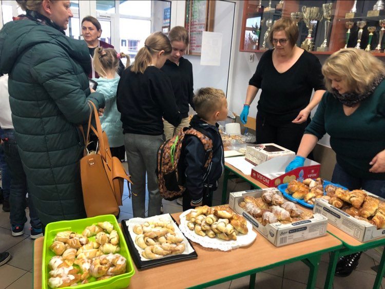 10 listopada był w szkole świątecznym dniem. Dzieci w biel i czerwień ubrane, akademie szkolne, wspólne śpiewanie hymnu państwowego, dekoracje patriotyczne - to tylko niektóre podjęte akcje z okazji Święta Niepodległości. Od samego rana Rada Rodziców przygotowała kiermasz tradycyjnego dla Wielkopolski, a nawet Polski produktu - Rogali Marcińskich. Następnie odbyły się apele z okazji 104 rocznicy odzyskania niepodległości przez Polskę. Apel przygotowali uczniowie klas IVA I VIB wraz z nauczycielami. Tradycyjnie o godz. 11.11 wspólnie przed szkołą śpiewaliśmy "Mazurka Dąbrowskiego".