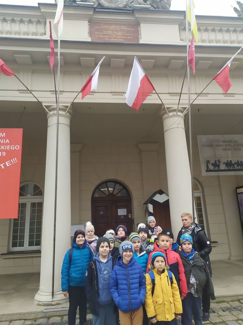 15 listopada 2022 r. uczniowie klas drugich w ramach Przedsięwzięcia Ministra Edukacji i Nauki pn. „Poznaj Polskę" wyjechali na wycieczkę edukacyjną do Poznania. Swoją edukacyjną podróż rozpoczęli od wizyty w Wielkopolskim Muzeum Niepodległości oddział Muzeum Powstania Wielkopolskiego 1918-1919. Pan Przewodnik pokazał dzieciom ekspozycję stałą i przedstawił dzieje zrywu Wielkopolan. Uczniowie poznali okoliczności przyjazdu do Poznania Ignacego J. Paderewskiego. Uczniom dużą radość sprawiła możliwość założenia powstańczego munduru i wzięcia karabinu do ręki. Kolejnym punktem programu była Starówka z widokiem na wieżę ratuszową z koziołkami. Jest to miejsce tętniące życiem wraz z pięknymi budynkami i urokliwymi zakątkami – czasy prawdziwego rozkwitu miasta Poznania. Następnym punktem wycieczki był ogród botaniczny – Palmiarnia w Poznaniu. Głównym celem było pogłębienie wiedzy przyrodniczej poprzez bezpośrednią obserwację oraz uświadomienie uczniom różnorodności gatunkowej świata roślin. Chęć popatrzenia na zielone rośliny, pooddychania wilgotnym i ciepłym powietrzem. Zwiedziliśmy kilka pawilonów tematycznych w każdym spotykając przeróżne formy flory i fauny. Poza egzotycznymi roślinami widzieliśmy również: akwaria z żółwiami, egzotyczne papugi i kanarki, terraria z gadami, które wzbudziły ogromne emocje. W ciepłych i wilgotnych pawilonach dzieci podziwiały także rośliny tropikalne o efektownych liściach oraz pnączach, bananowce, paprocie, rośliny owadożerne, palmy, daktylowce, sagowce oraz wiele gatunków kaktusów. Atrakcją było podziwianie roślin i ryb w oczkach wodnych oraz akwariach.