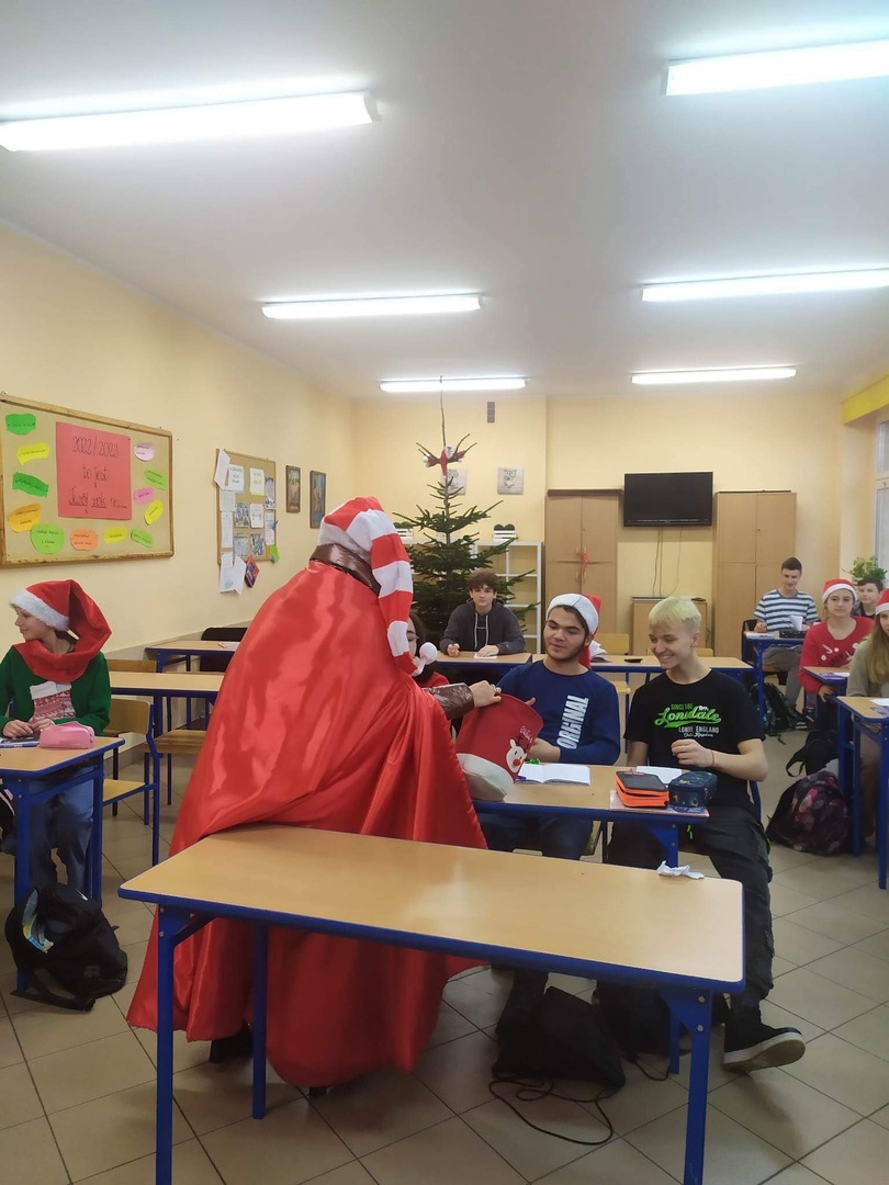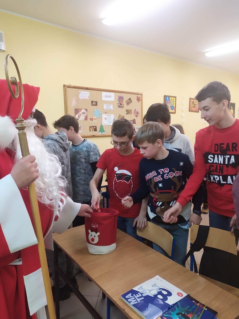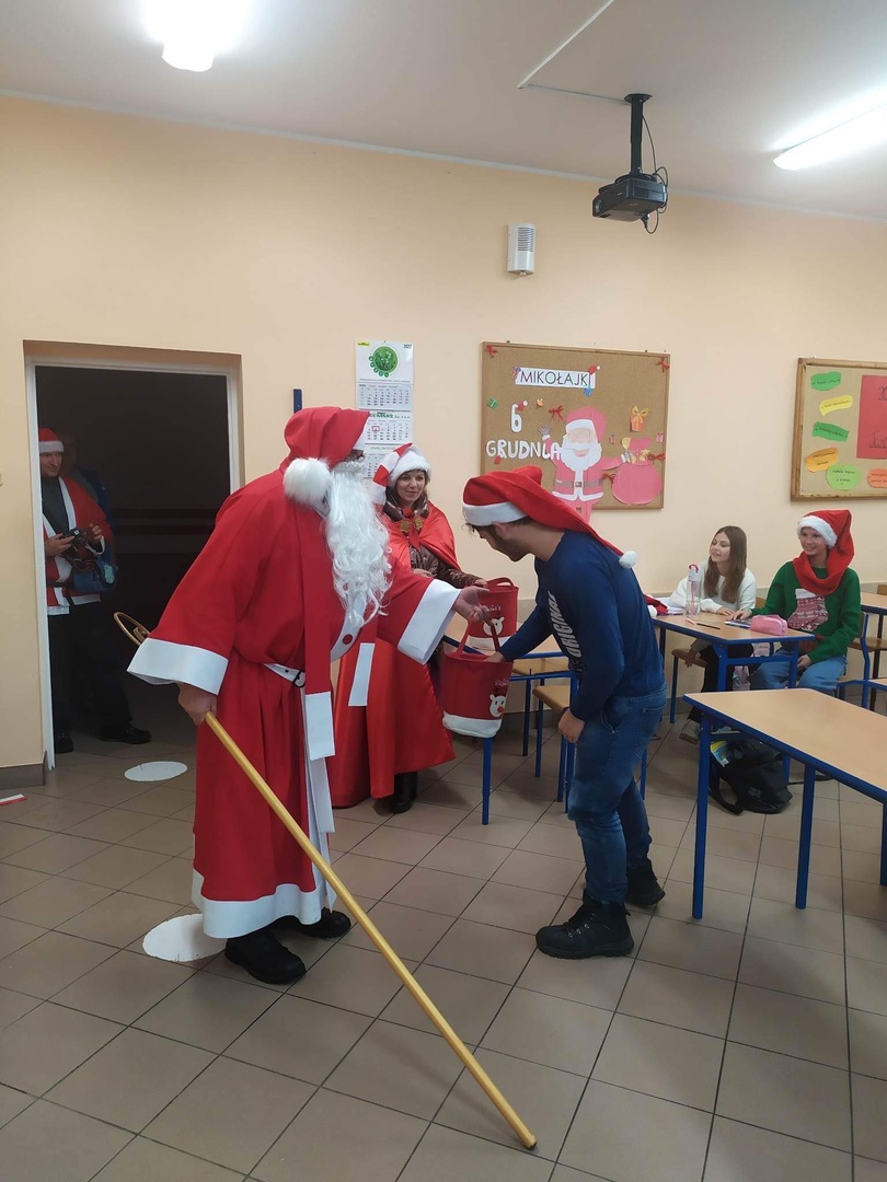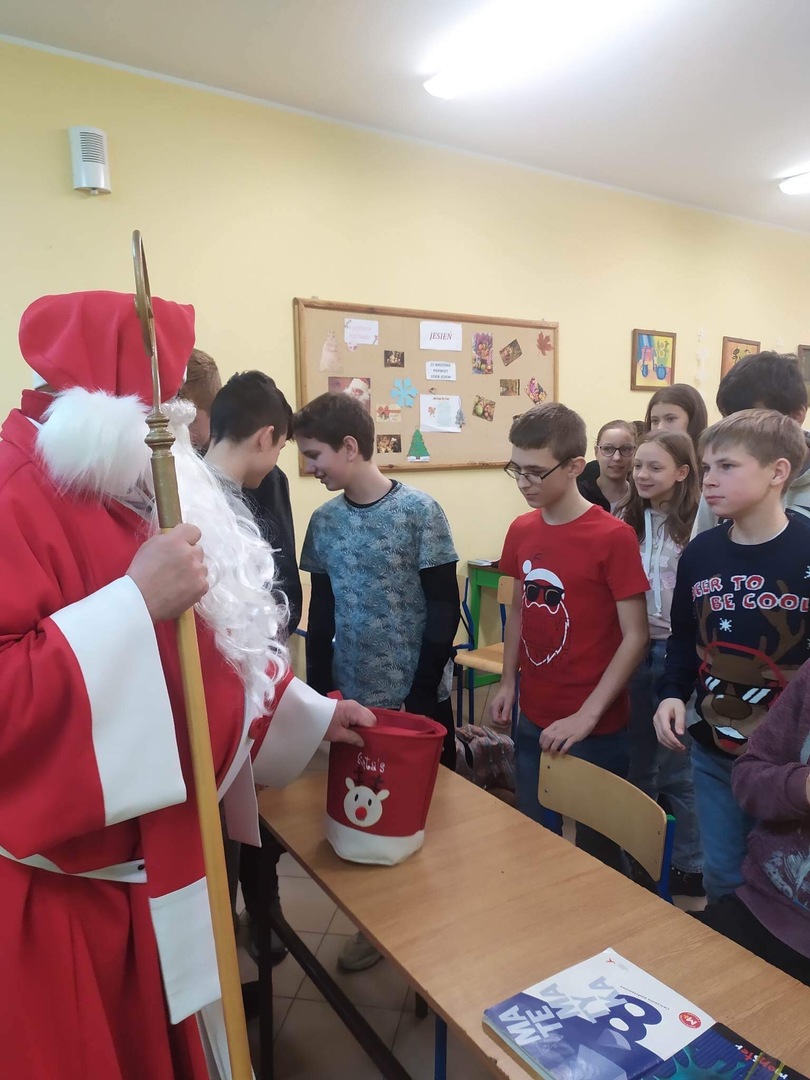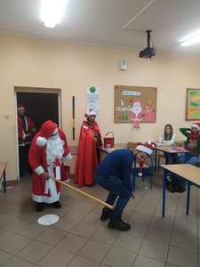 Święty Mikołaj chodzi po świecie i po Koźminie Wlkp. Dziś dotarł wraz z pomocnikami do naszej szkoły i przyniósł słodkie prezenty. Niektórzy musieli wykonać zadania - skoki przez rózgę. Wszyscy obiecali, że już będą grzeczni. Sezon świąteczny uważamy za otwarty!