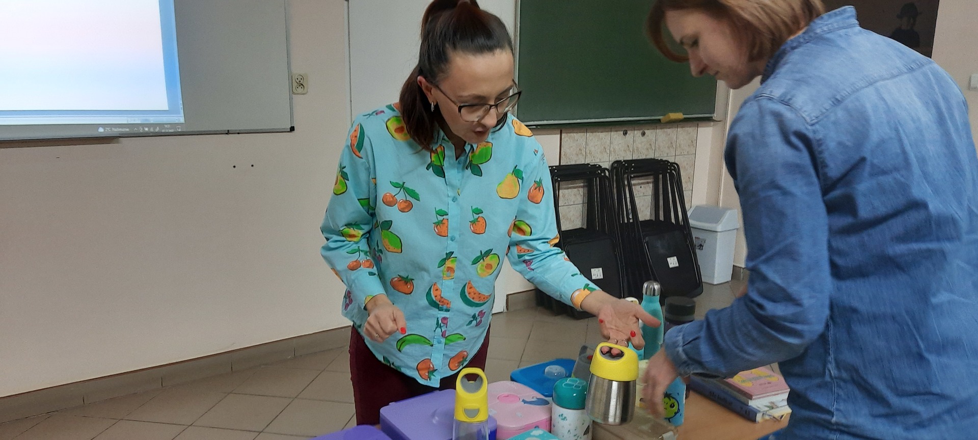 Prowadząca prelekcje Pani Karolina Bruchal - Bąk w ciekawy i zachęcający sposób przedstawiła temat dotyczący wartoścowej i kolorowej śniadaniówki. Jak można spakować drugie śniadanie w 15 minut? Zaprezentowała obszernie temat związany ze zdrowym żywieniem dzieci oraz pokazała rodzicom jak wygląda prawidłowo spakowany lunchbox dla dziecka?
