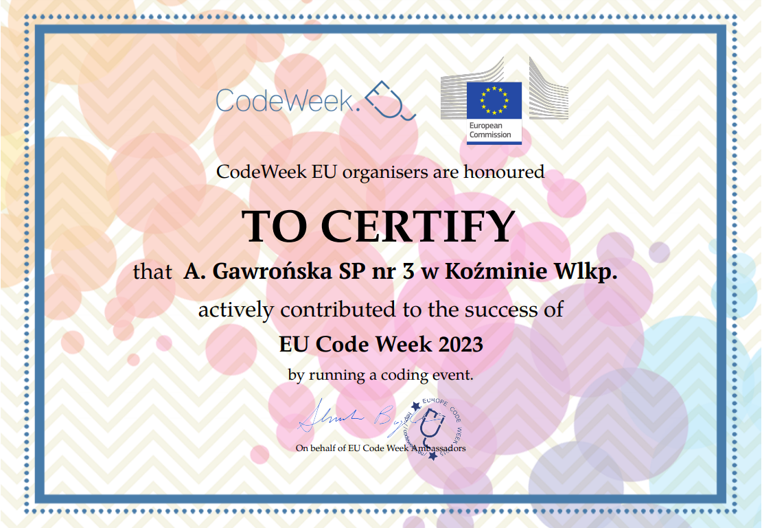 Uczniowie naszej szkoły podczas lekcji matematyki rozwiązują zadania, wykorzystując kodowanie. Co roku uczestniczą w EU Code Week, czyli Europejskim Tygodniu Kodowania.