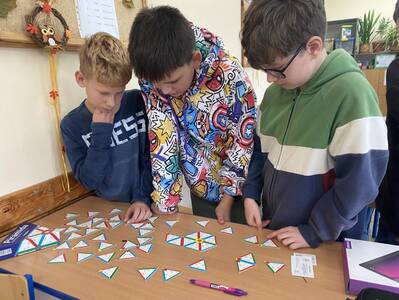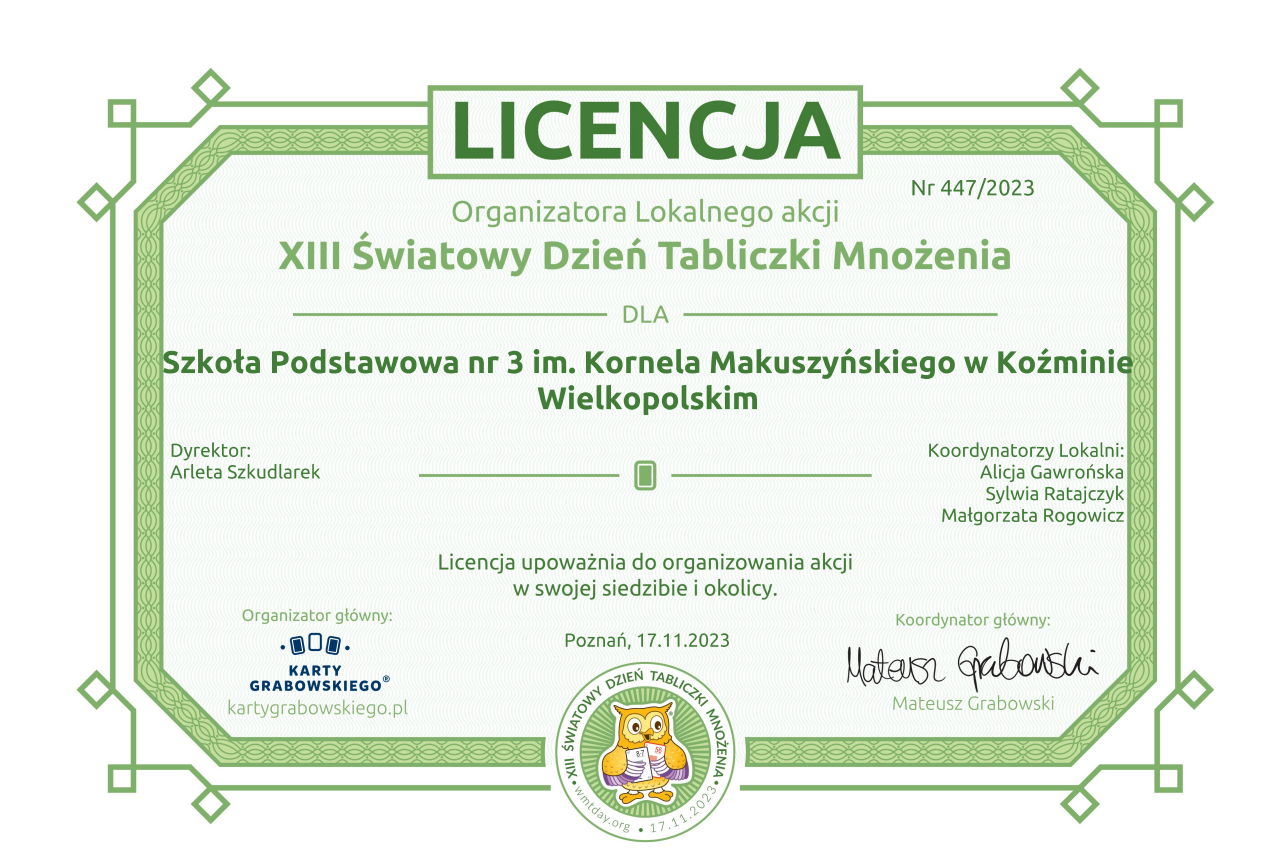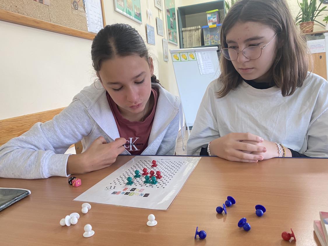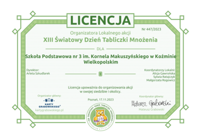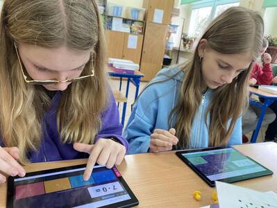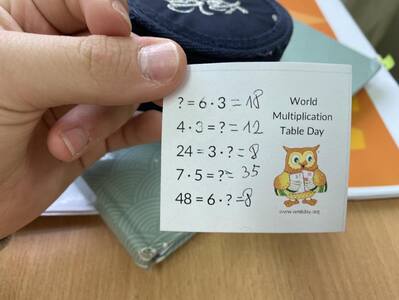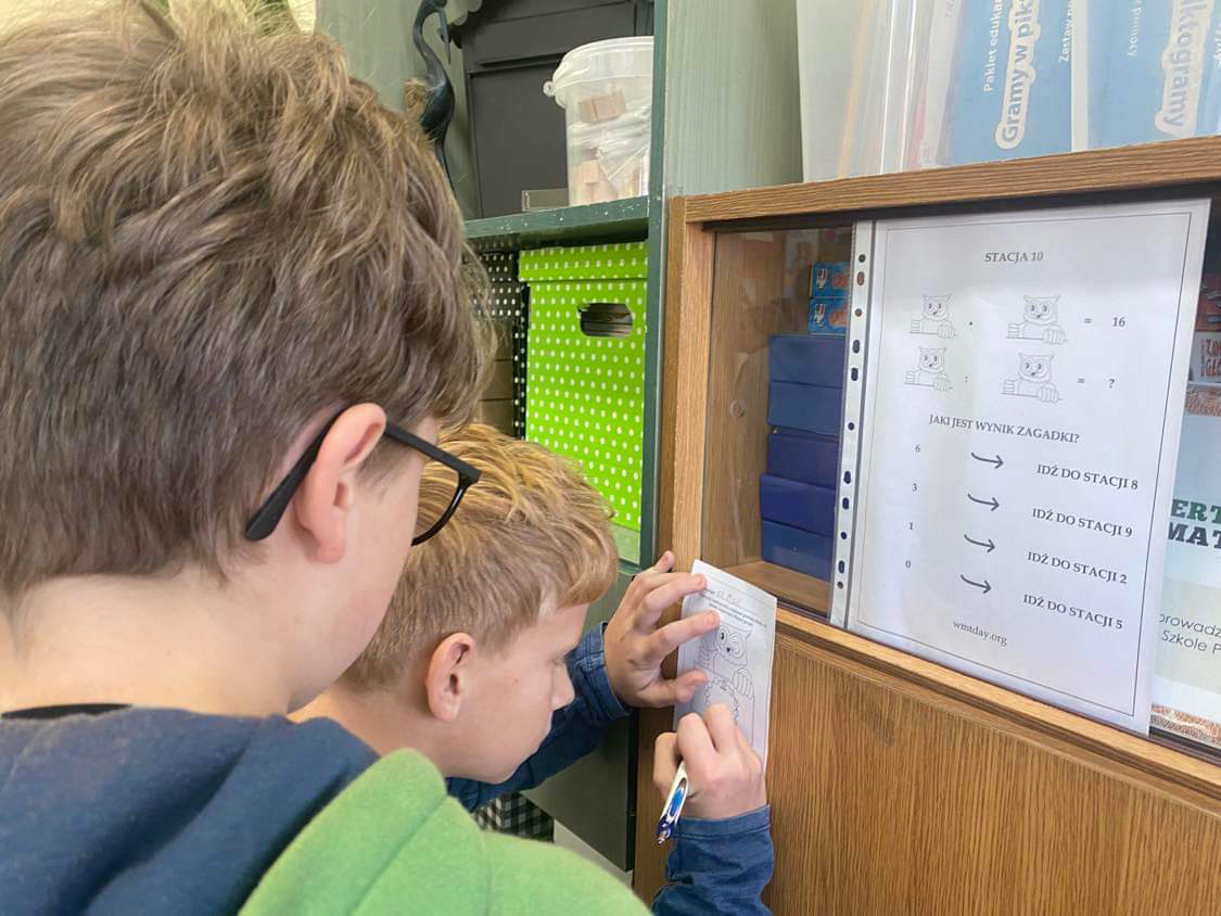Podczas lekcji matematyki uczniowie rozwiązywali zadania i łamigłówki związane z tabliczką mnożenia zamieszczone na stronie https://www.wmtday.org/. Ponadto układali „Piramidy matematyczne”, grali w grę „Trzy w linii” wykorzystując kości i guziki kucharskie oraz rozwiązywali quizy online korzystając z aplikacji Quizizz oraz Blooket. Do zabawy wykorzystano również Karty Grabowskiego, grę edukacyjną pomagająca uczniom w nauce matematyki.
