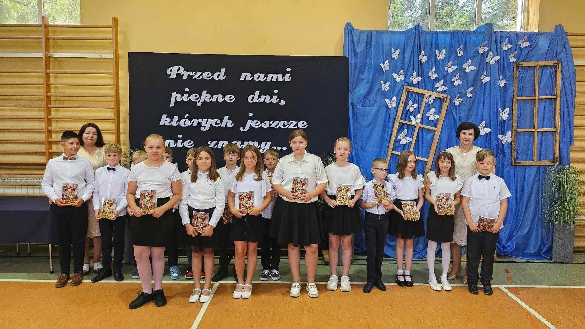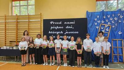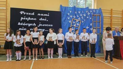 Na dwa miesiące ze szkołą pożegnały się klasy I-VI. Najpierw Dyrektor szkoły i wychowawcy klas trzecich wręczyli wszystkim uczniom pamiątki ukończenia pierwszego etapu edukacyjnego, a najlepszym uczniom wychowawcy z klas IV- VI wręczyli nagrody.