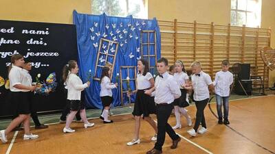 Uczniowie klas trzecich pożegnali przygodę z edukacją wczesnoszkolną wierszem, piosenką i uroczystym polonezem. Wszyscy wyglądali bardzo elegancko. Występ uczniów klas trzecich został nagrodzony gromkimi brawami. Uroczystość była pełna refleksji, wzruszeń, zadumy oraz radości.
