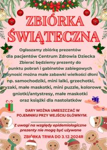 Szkolne Koło PCK ogłasza zbiórkę prezentów dla dzieci z Centrum Zdrowia Dzieckaw Warszawie. Cel jest szlachetny - chodzi tu o uśmiech dzieci.