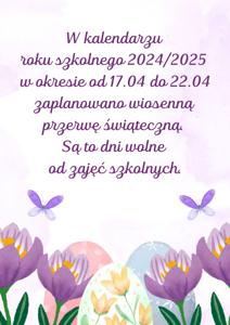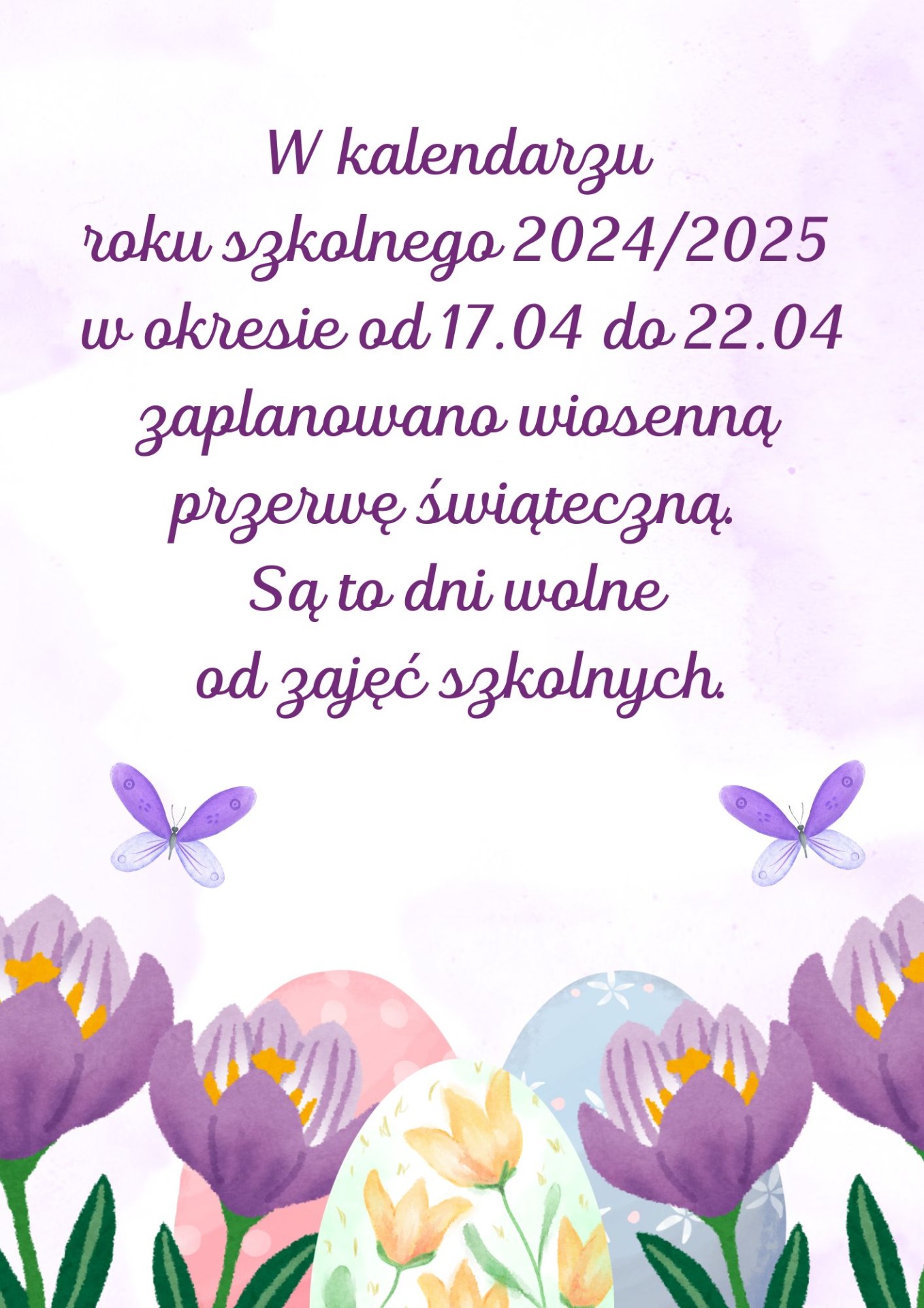 Przerwa wiosenno - świąteczna Zdjęcia Zobacz również Konsultacje dla Rodziców Drzwi otwarte Konferencja "Matematyka dla Wszystkich" Przerwa wiosenno - świąteczna ŚWIĘTA MAJOWE ZEBRANIA Z RODZICAMI 14 kwietnia 2025 Komunikaty Wydrukuj Udostępnij Wyświetlono: 38