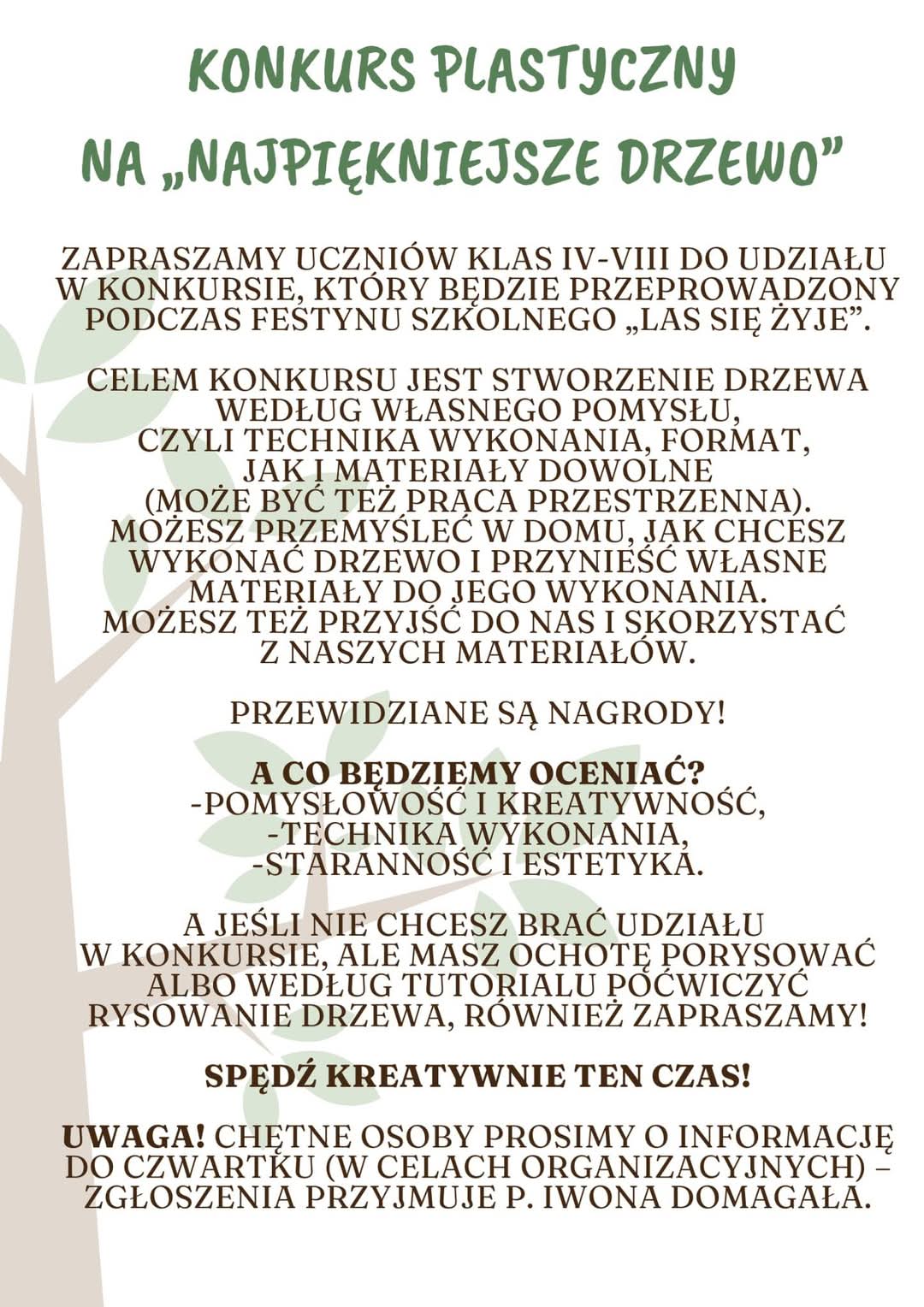 Zapraszamy do udziału w konkursie plastycznym. Szczegóły poniżej Zdjęcia Zobacz również Egzamin ósmoklasisty - dni wolne od zajęć dydaktycznych... Zapraszamy klasy I-III do udziału w konkursie Zapraszamy wszystkich uczniów do udziału Zapraszamy do udziału w konkursie plastycznym.... DRZWI OTWARTE Dzień wolny od zajęć dydaktycznych 20 maja 2025 Komunikaty Wydrukuj Udostępnij Wyświetlono: 18