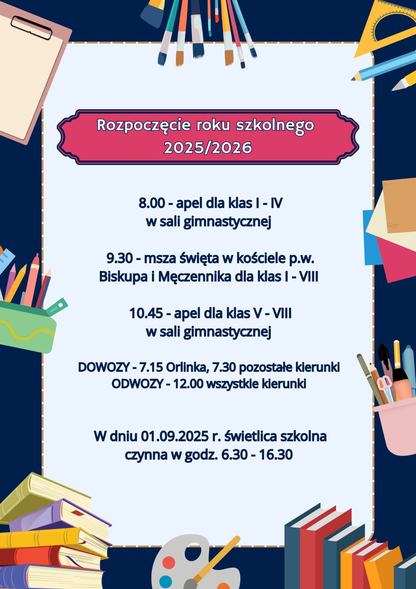 Organizacja rozpoczęcia roku szkolnego 2025/2026 Zdjęcia Zobacz również DRZWI OTWARTE Dzień wolny od zajęć dydaktycznych ORGANIZACJA ZAKOŃCZENIA ROKU SZKOLNEGO 2024/2025 Organizacja rozpoczęcia roku szkolnego 2025/2026 Zebranie Rodziców uczniów klas pierwszych Zebrania z Rodzicami 25 sierpnia 2025 Komunikaty Wydrukuj Udostępnij Wyświetlono: 60