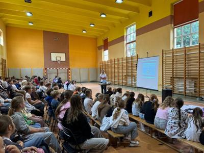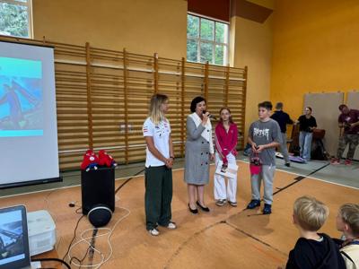 Podczas spotkania Julia opowiedziała uczniom o swojej sportowej pasji, wymagających treningach oraz o tym, jak wygląda droga od pierwszych kroków na desce do startów w prestiżowych zawodach. Uczniowie mieli okazję dowiedzieć się, jak ważne są wytrwałość, systematyczność i odwaga w dążeniu do wyznaczonych celów.