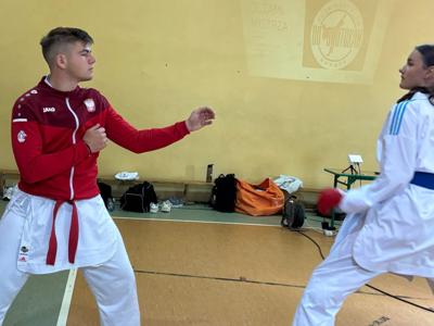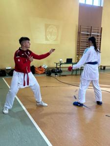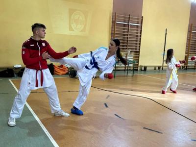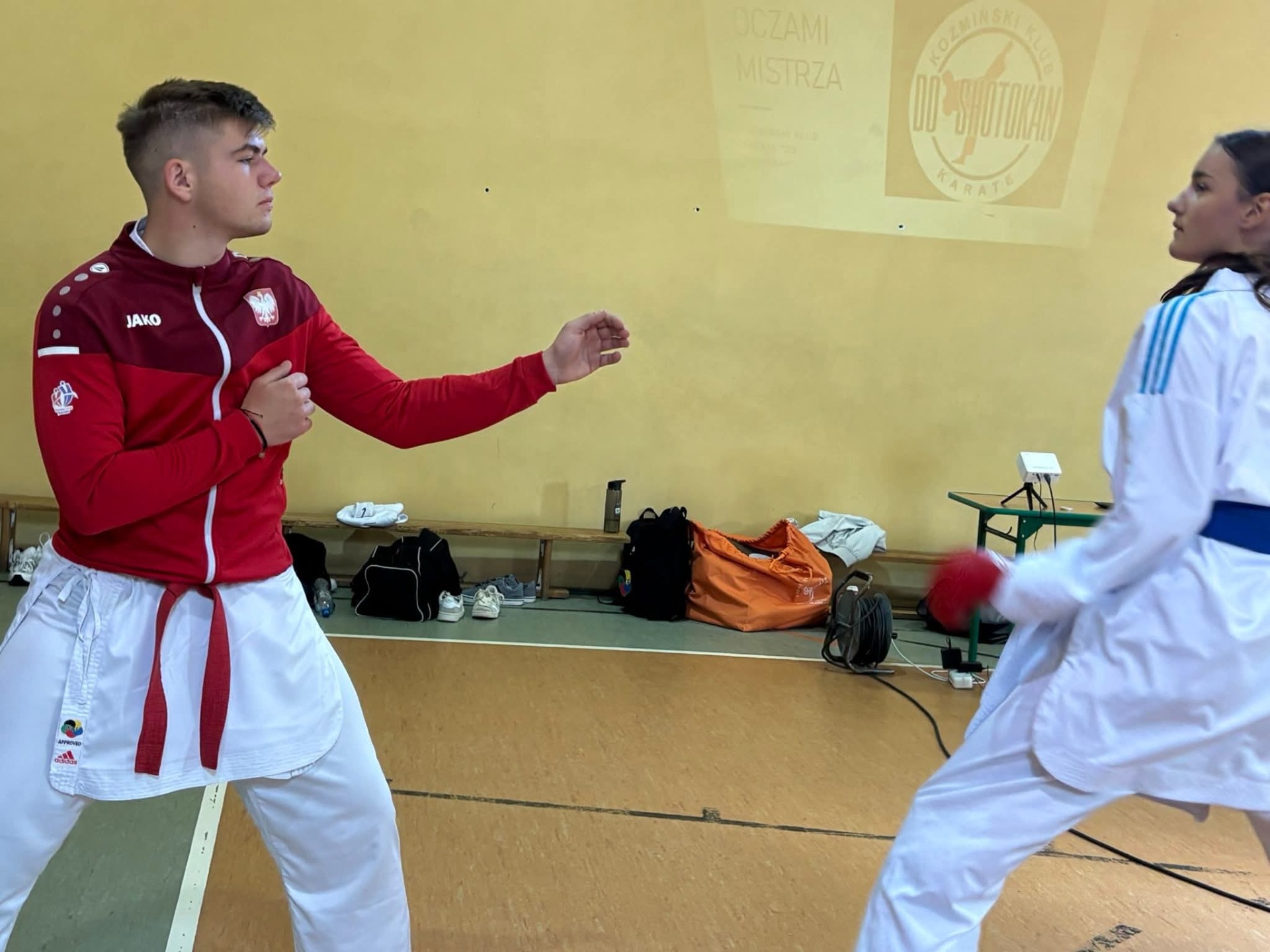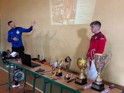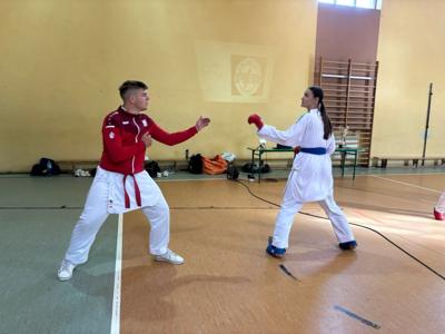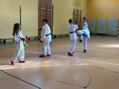 Dziś uczniowie klas młodszych mieli wyjątkową okazję spotkać się z mistrzami karate – Mateuszem Drożdżyńskim i Kajetanem Woźniakiem.