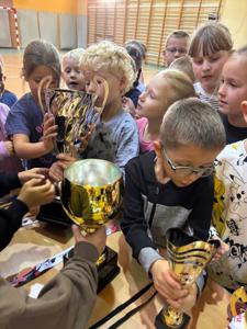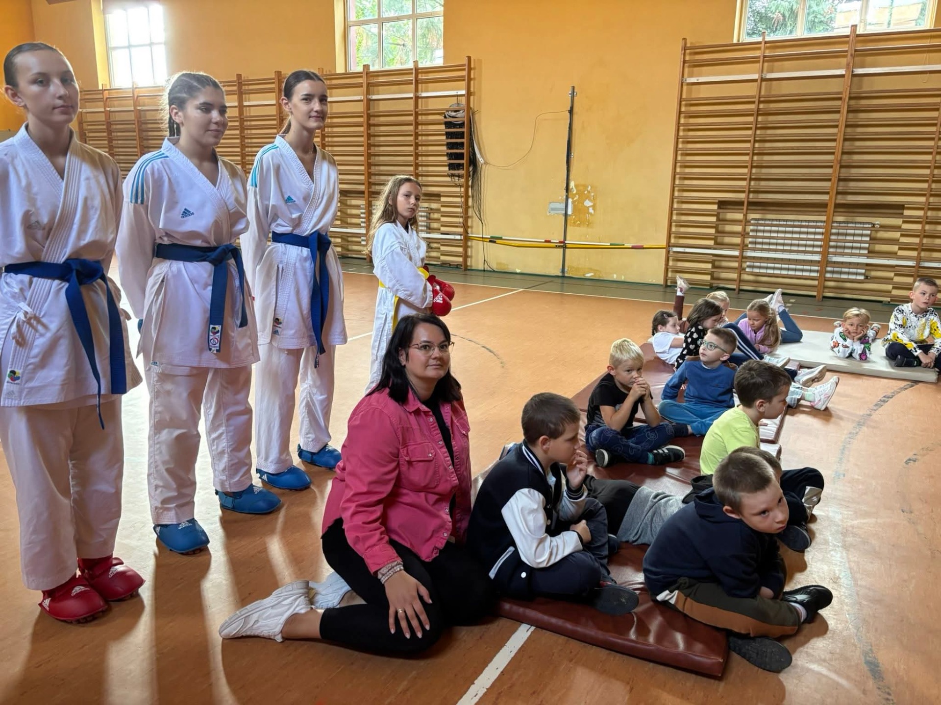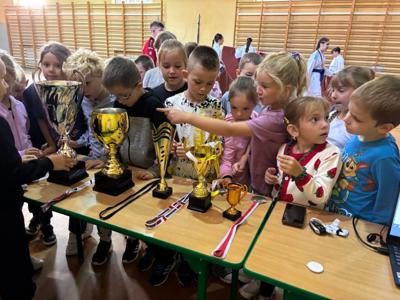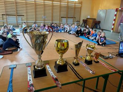 Starsi zawodnicy koźmińskiego klubu „Do Shotokan” zaprezentowali pokaz karate, a najmłodsi mogli z bliska obejrzeć puchary i medale zdobyte na zawodach. 🏆✨