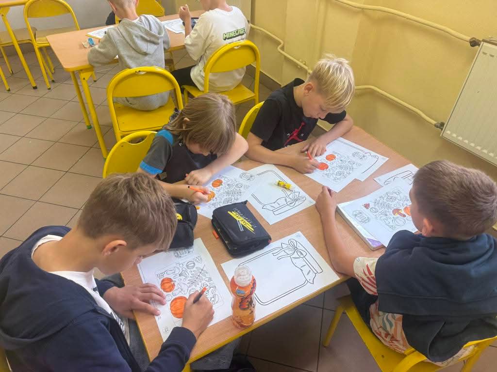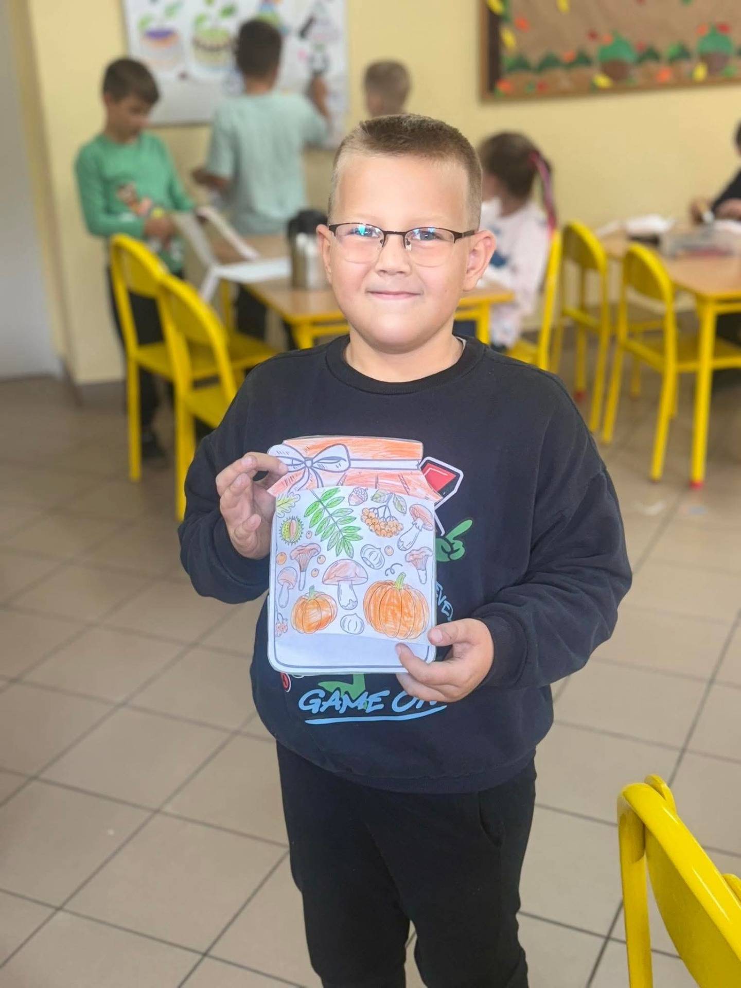 Dziś uczniowie świetlicy III-VIII zakończyli tydzień poświęcony tematowi pt. „Jesień” wykonując piękne prace plastyczne – „Słoiki 3D”. W swoich kompozycjach dzieci zamknęły jesienne skarby: kolorowe liście, kasztany, żołędzie i owoce. Prace zachwyciły pomysłowością i barwami, a jednocześnie były świetnym podsumowaniem jesiennych zajęć w świetlicy.