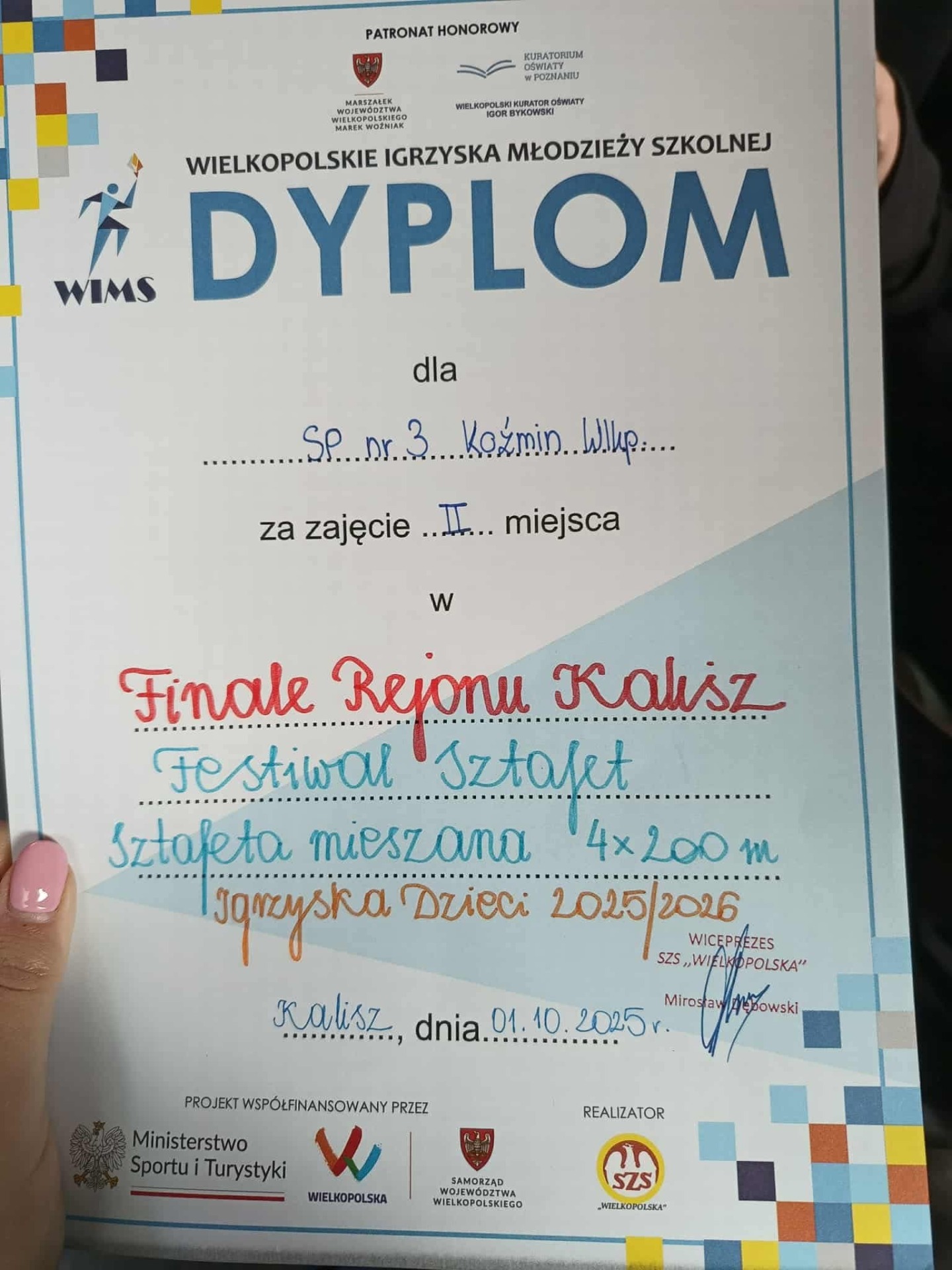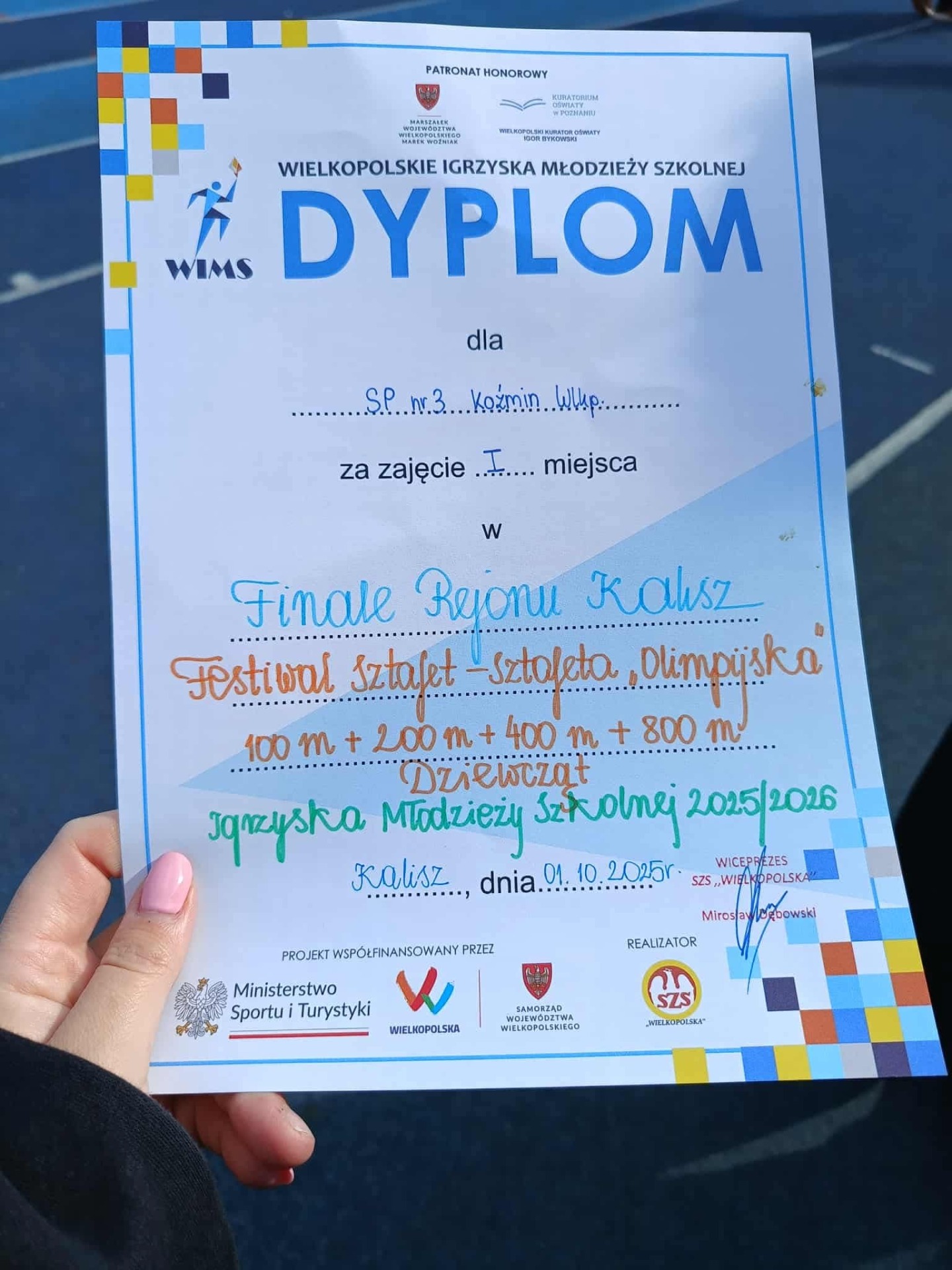 Z ogromną radością informujemy, że reprezentacja naszej szkoły odniosła wielki sukces podczas Finału Rejonu w Kaliszu – Festiwalu Sztafet. Nasi uczniowie pokazali nie tylko świetne przygotowanie sportowe, ale także ogromną wolę walki i ducha zespołowego.