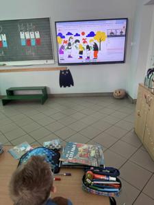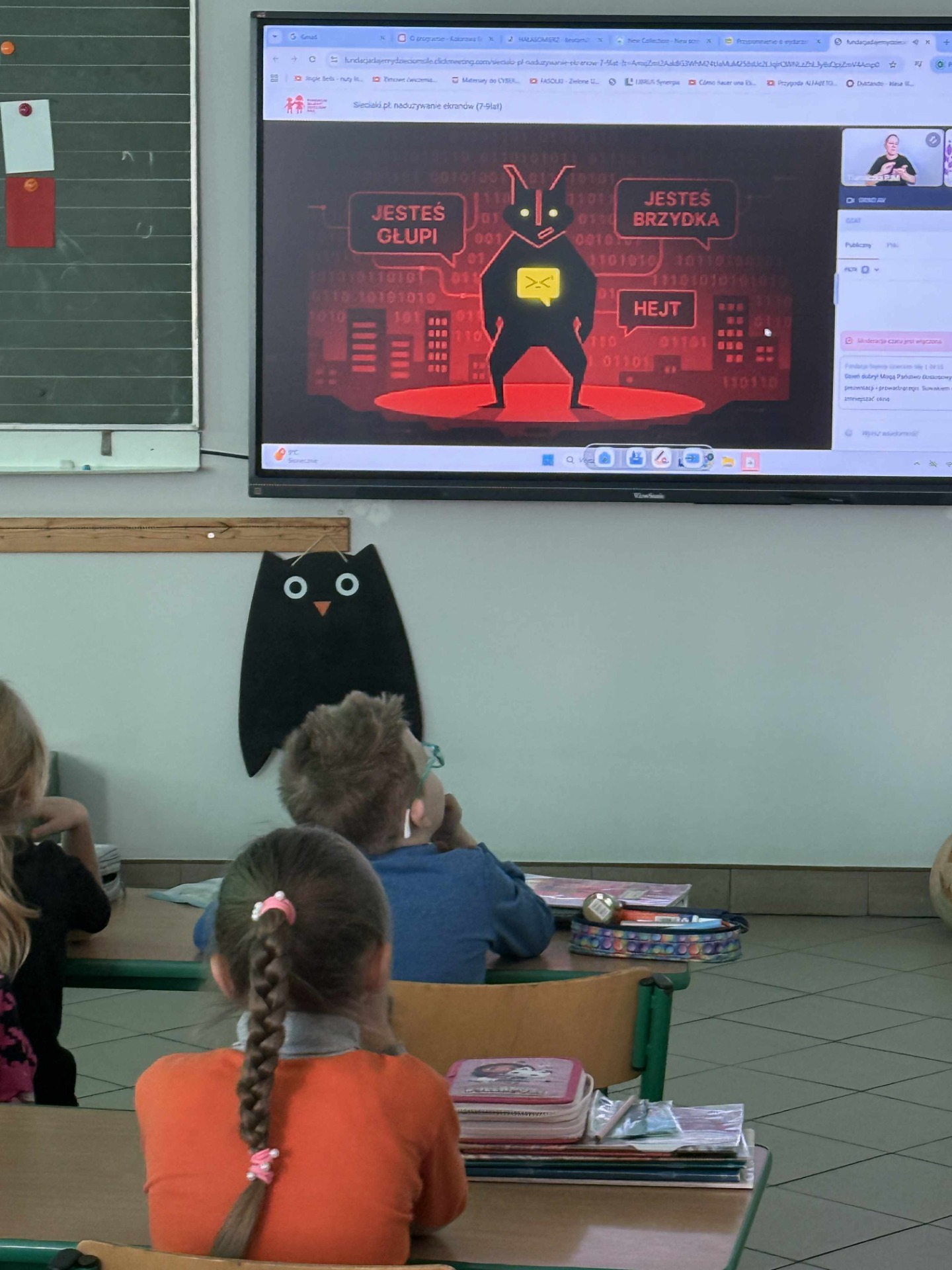 Podczas lekcji dzieci zastanawiały się, ile czasu każdego dnia spędzają przed ekranem oraz jak się czują po długim korzystaniu z urządzeń cyfrowych. Dzięki aktywnym ćwiczeniom i rozmowie o codziennych nawykach uczniowie nauczyli się rozpoznawać objawy nadużywania internetu 🕒💭