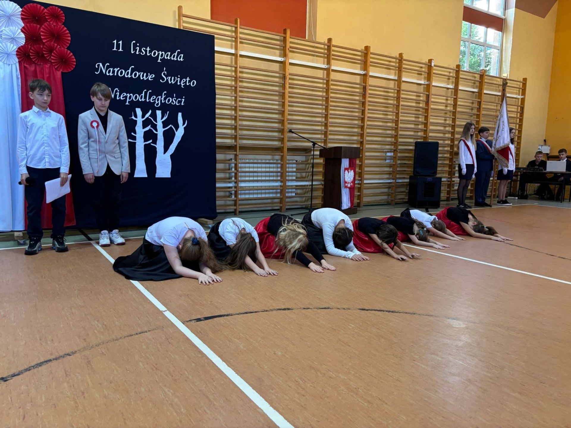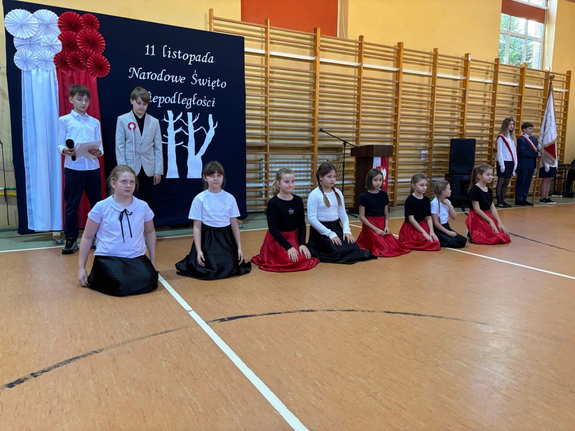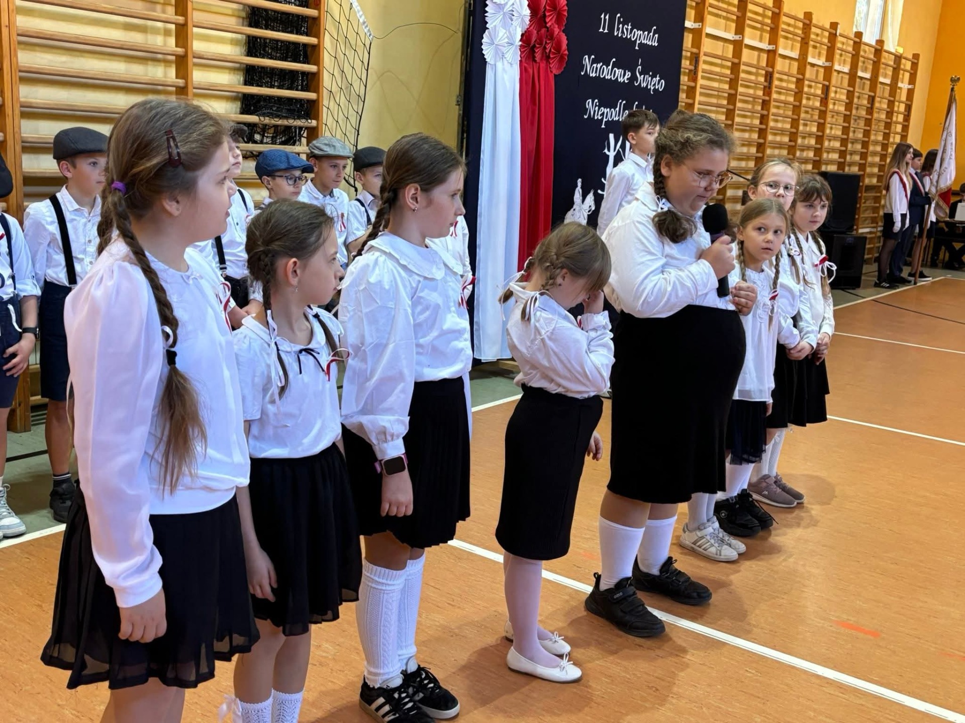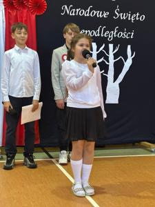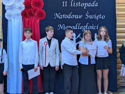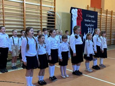 Na szkolnej scenie pojawiły się wiersze i pieśni patriotyczne, które wprowadziły wszystkich w podniosły, refleksyjny nastrój. Uczniowie poprzez recytację i śpiew wyrazili swój szacunek dla Ojczyzny oraz wdzięczność wobec tych, którzy walczyli o wolną Polskę.