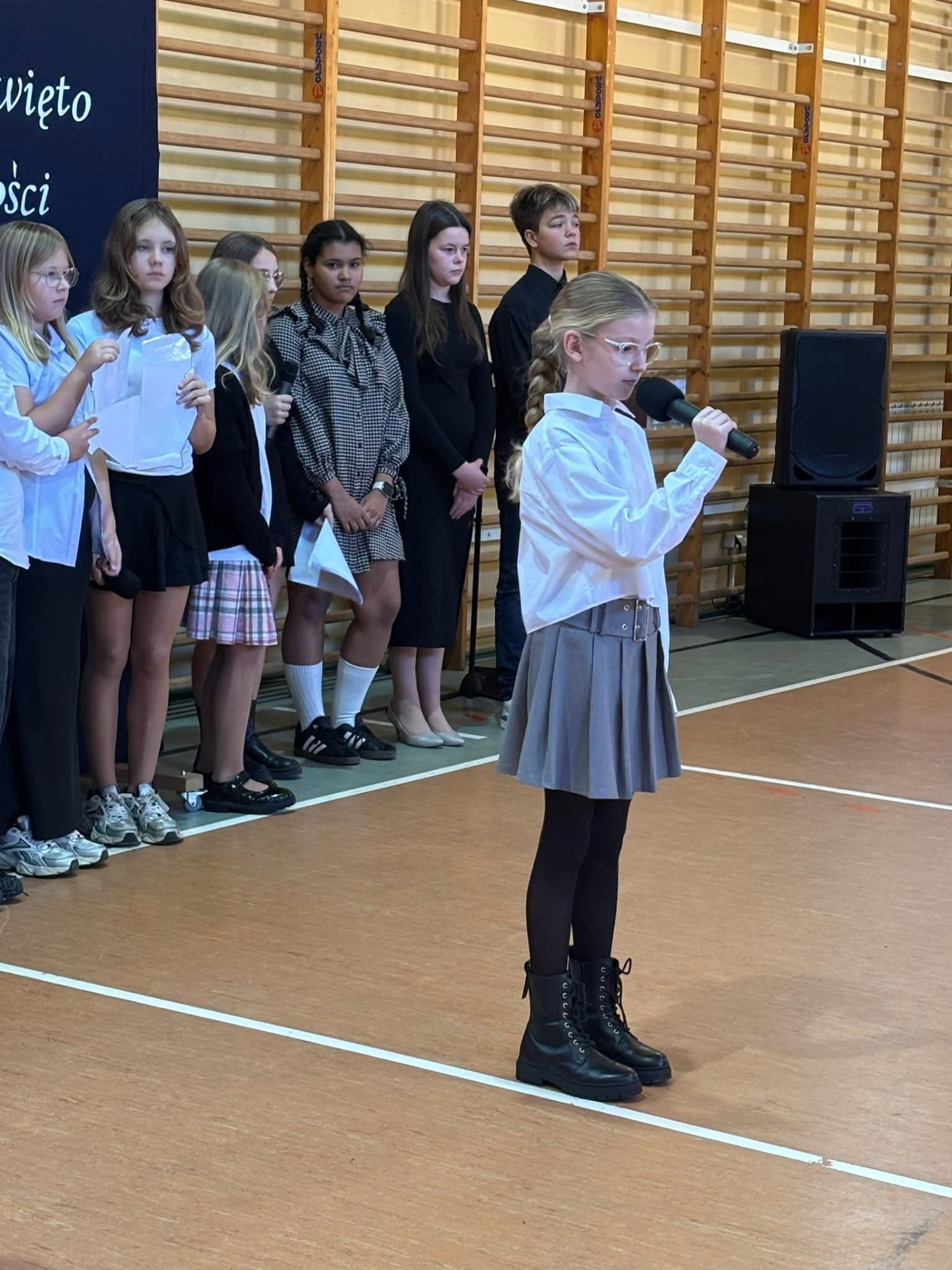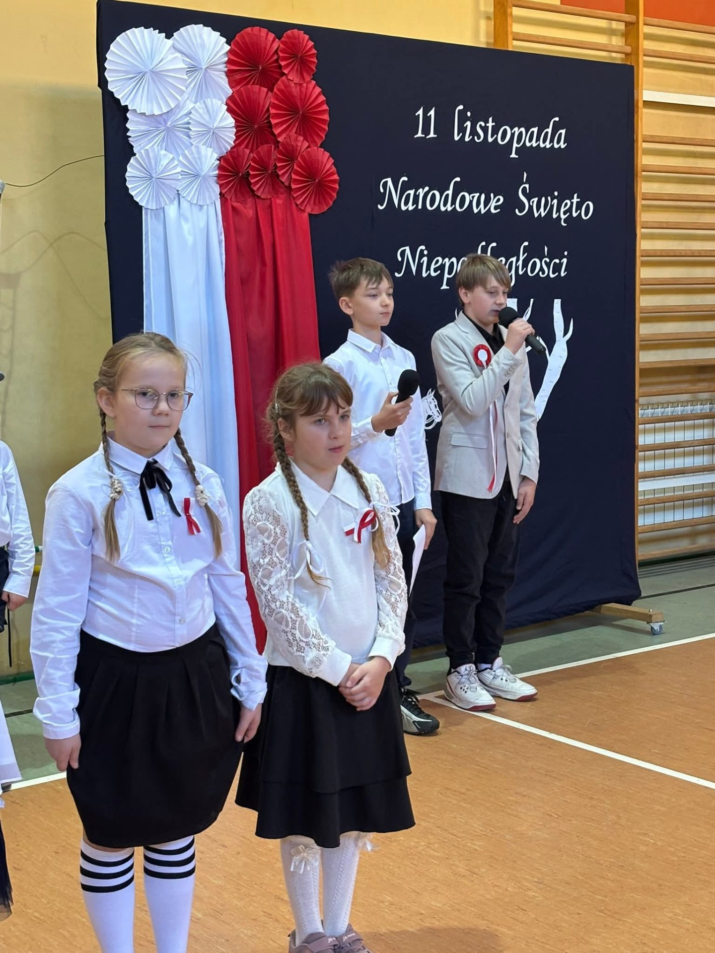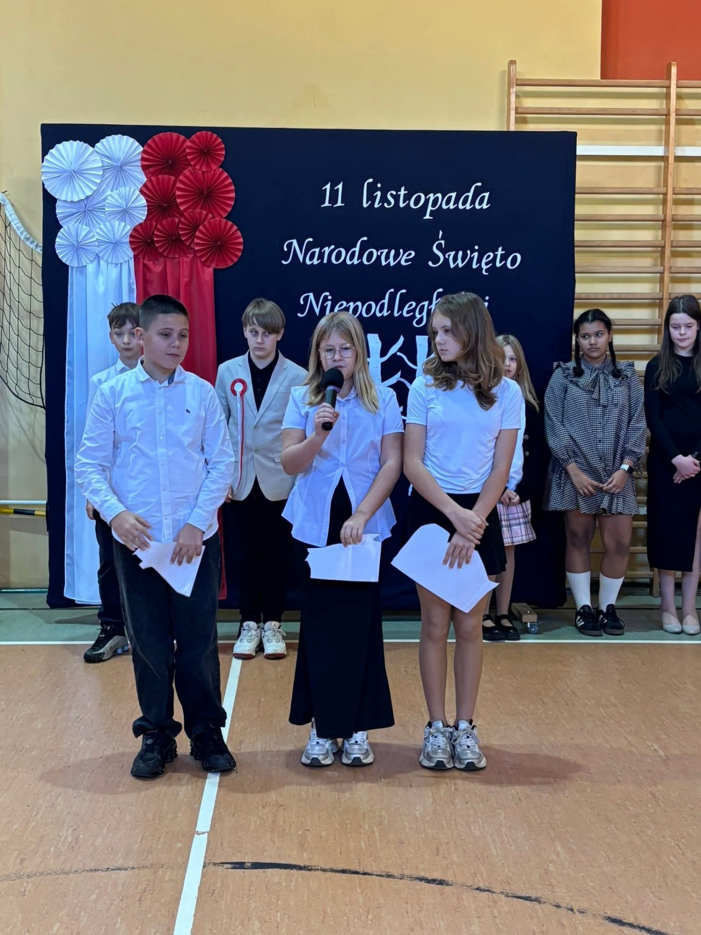 Na szkolnej scenie pojawiły się wiersze i pieśni patriotyczne, które wprowadziły wszystkich w podniosły, refleksyjny nastrój. Uczniowie poprzez recytację i śpiew wyrazili swój szacunek dla Ojczyzny oraz wdzięczność wobec tych, którzy walczyli o wolną Polskę.