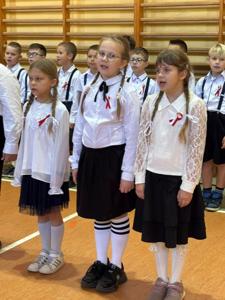 Uroczystość rozpoczęła się od wspólnego odśpiewania hymnu narodowego, po czym uczniowie zaprezentowali przygotowany z tej okazji program artystyczny.
