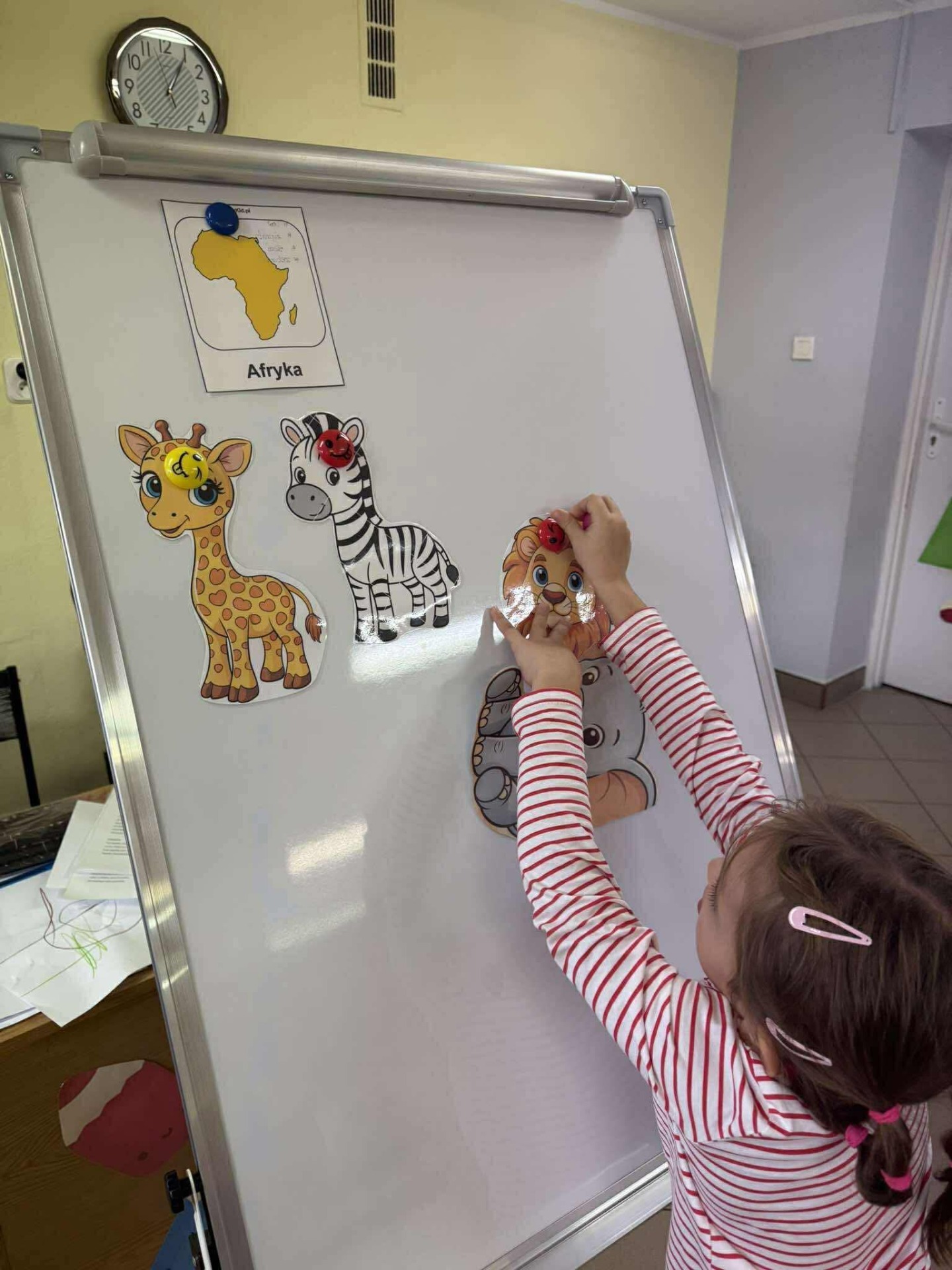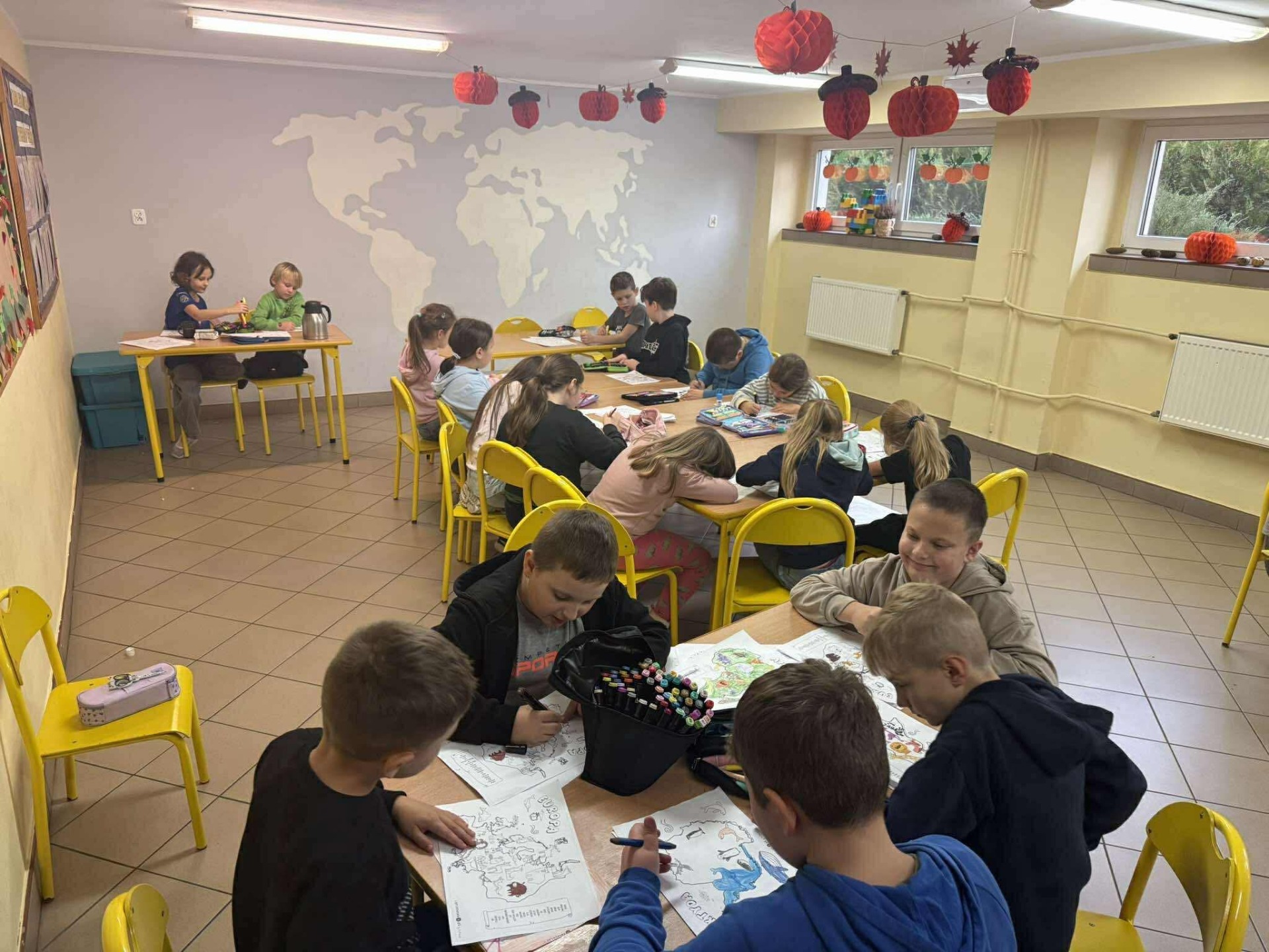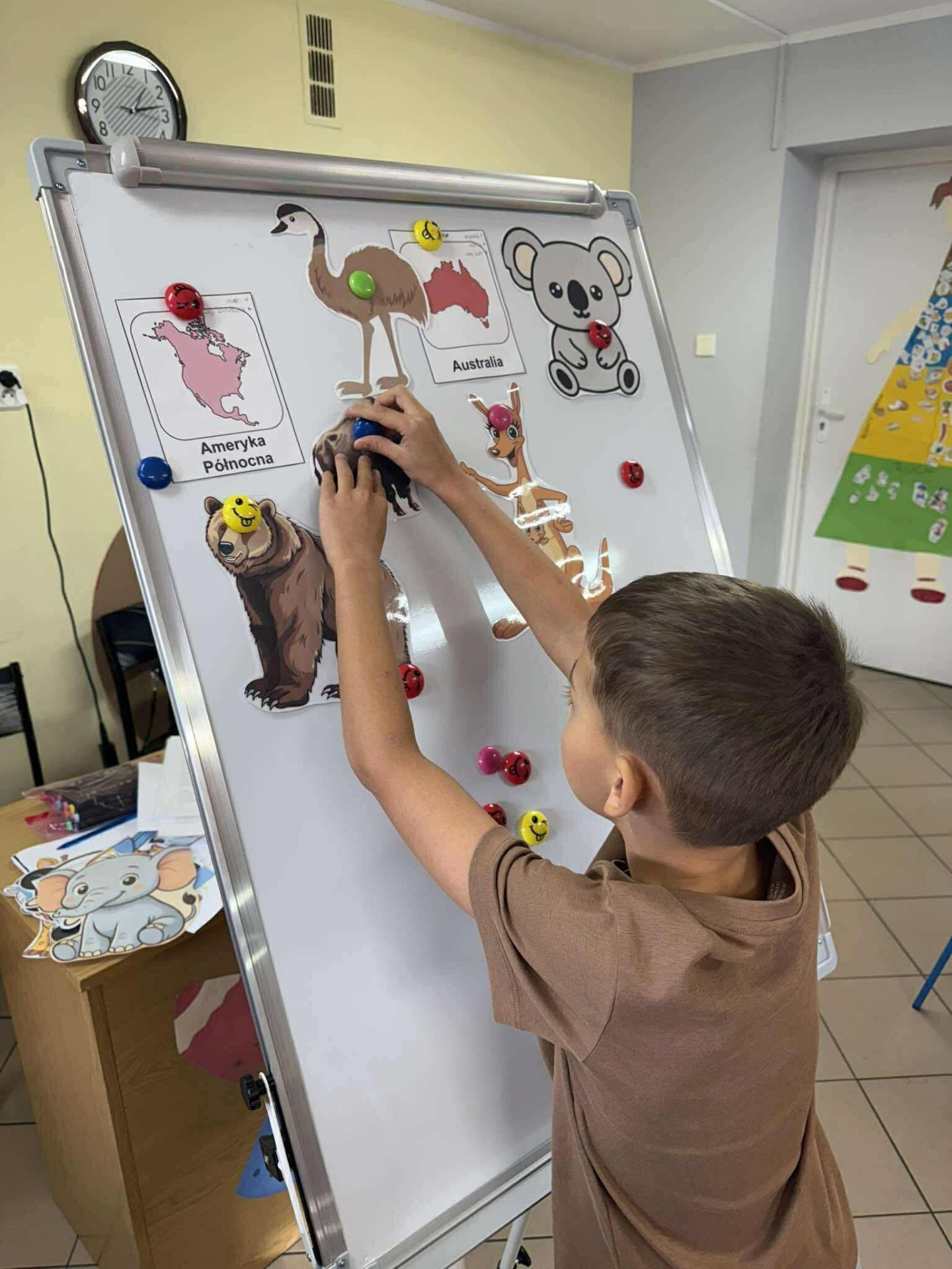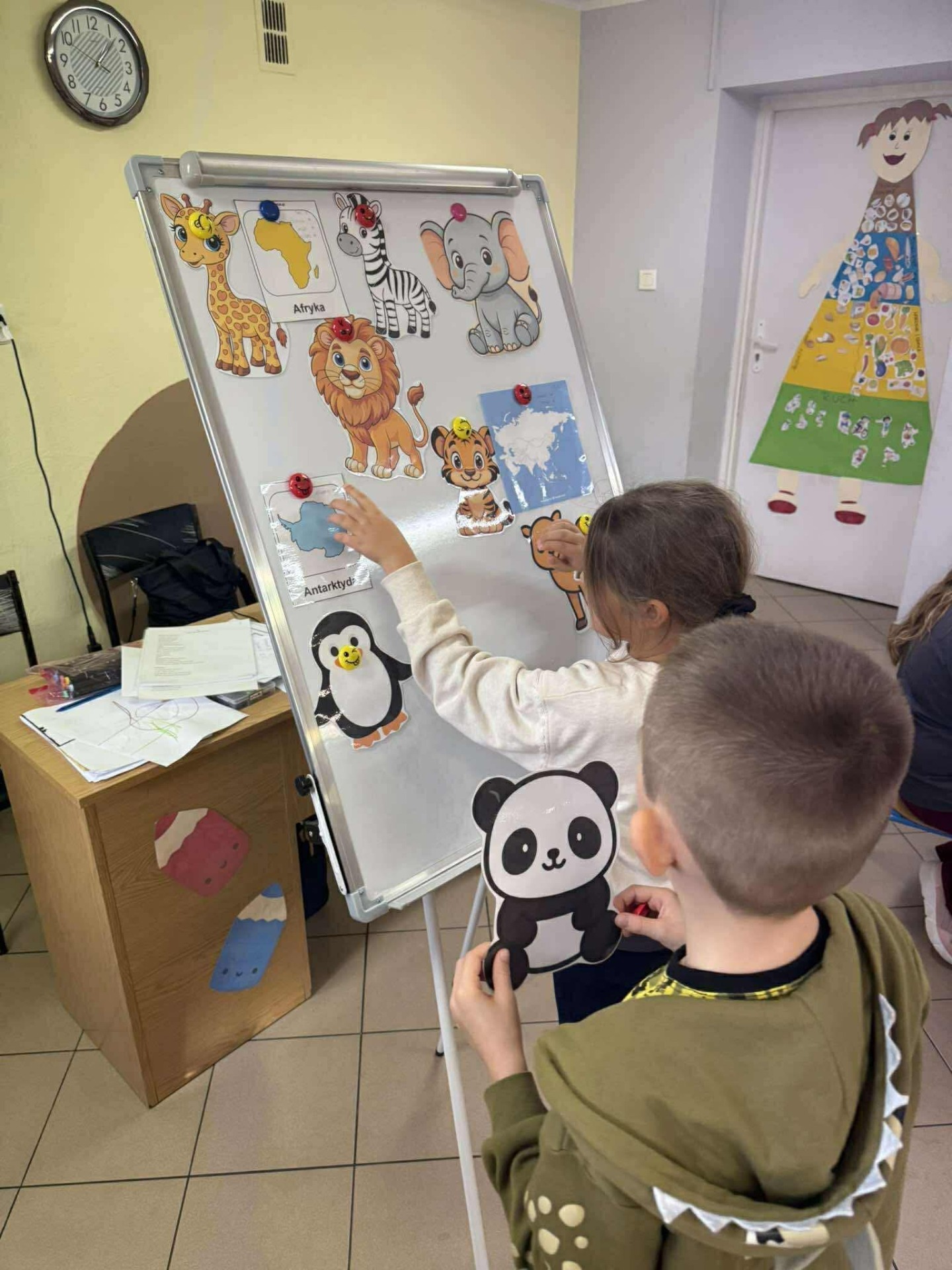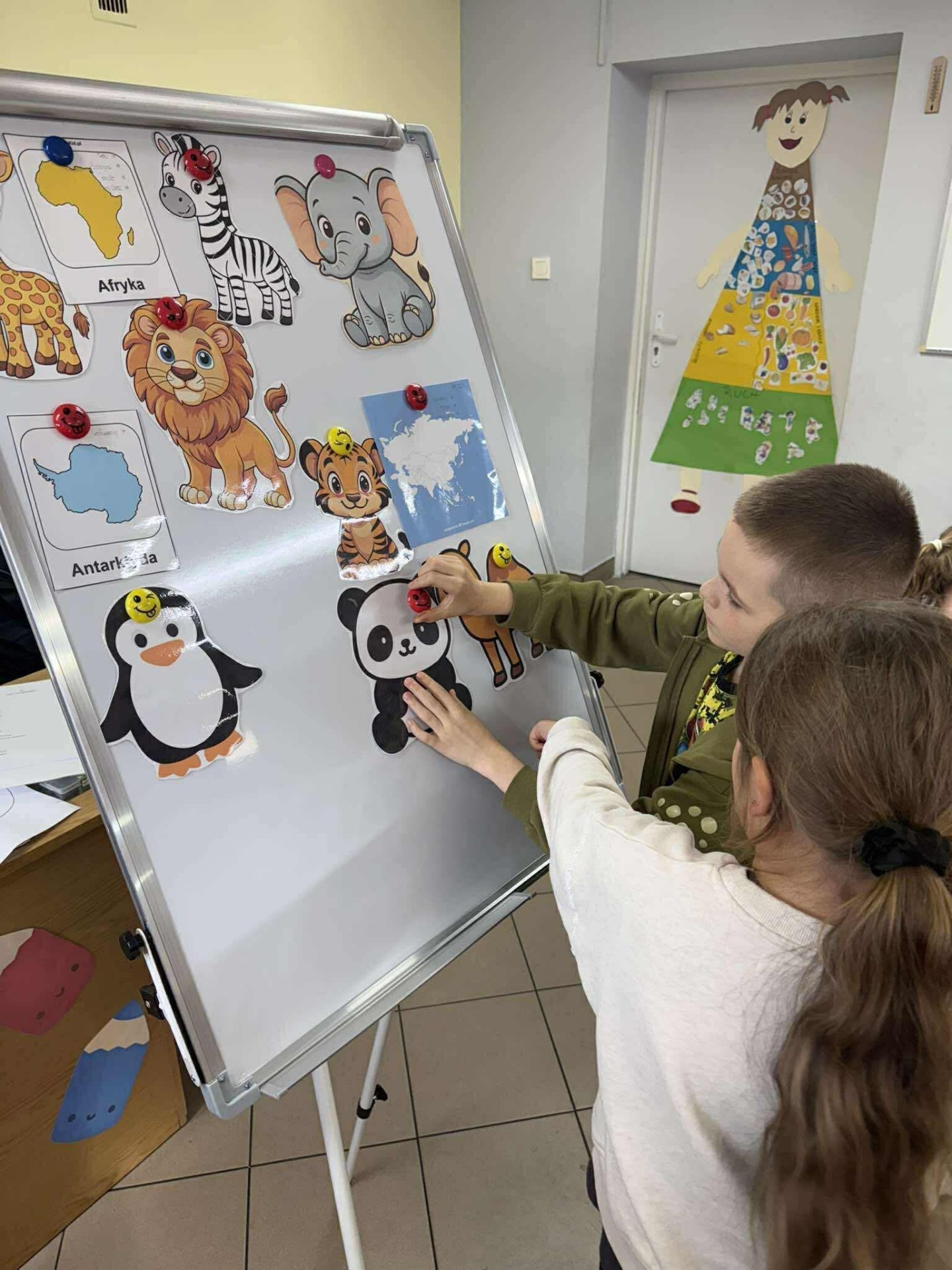 W tym tygodniu w świetlicy szkolnej odbyły się tematyczne zajęcia poświęcone zwierzętom z różnych kontynentów. Uczniowie poznali charakterystyczne gatunki zamieszkujące Afrykę, Azję, Europę, Australię, Amerykę Północną i Południową oraz Antarktydę. Podczas wspólnej pracy dzieci oglądały zdjęcia, przeglądały atlasy o zwierzętach, rozwiązywały quizy, tworzyły kolorowe ilustracje oraz dzieliły się ciekawostkami na temat ulubionych zwierząt. Zajęcia rozwijały wiedzę przyrodniczą, ciekawość świata i umiejętność pracy w grupie. Nie zabrakło również innych ciekawych prac plastycznych z wykorzystaniem różnych metod.
