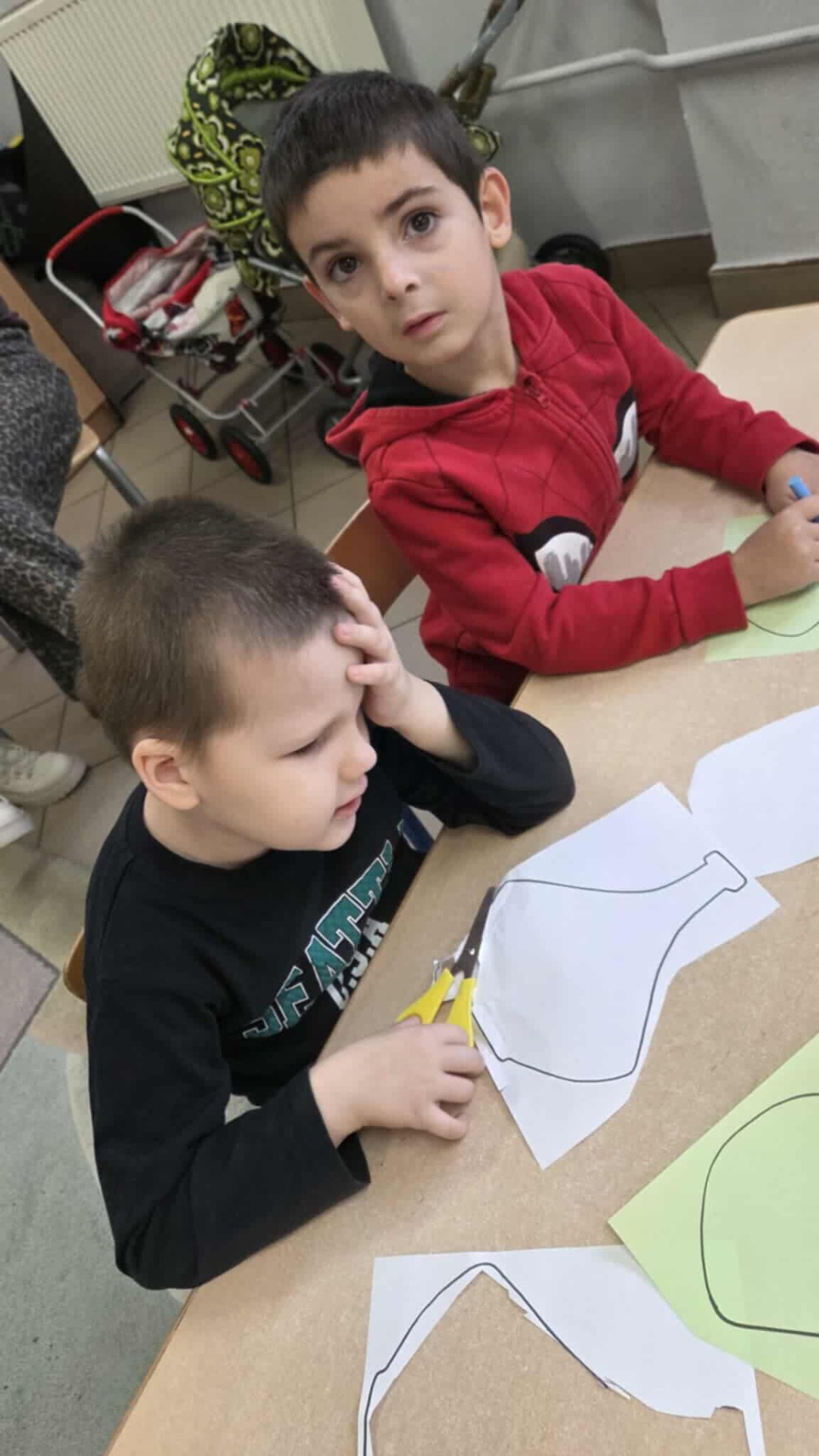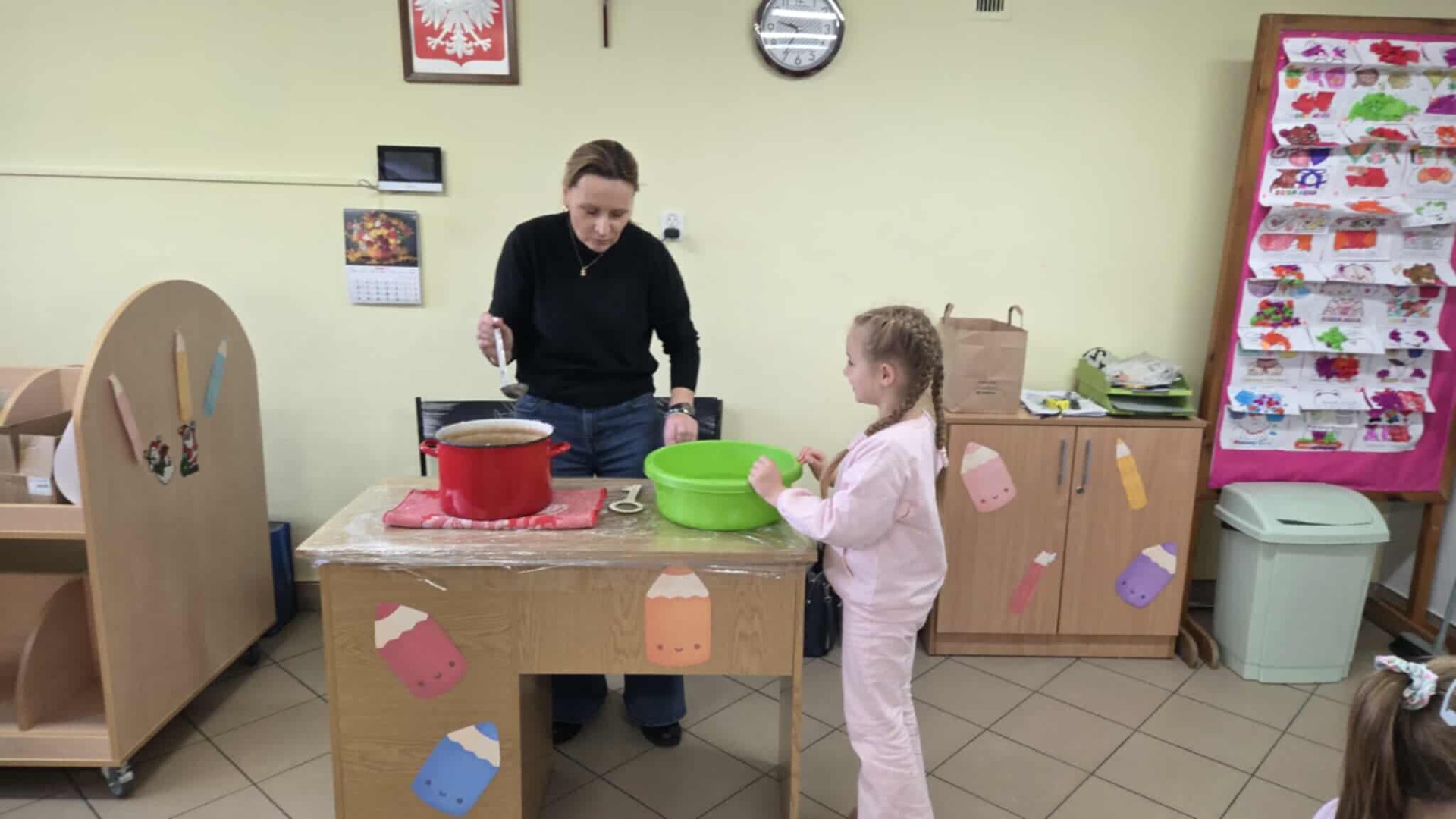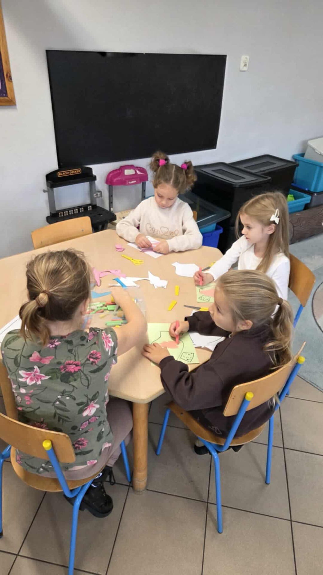 Dzieci z dużym zaangażowaniem wykonywały pracę plastyczną pod hasłem „Magiczne eliksiry”, tworząc barwne i pomysłowe kompozycje. Następnie udały się do strefy zabaw wyposażonej w klocki piankowe, gdzie mogły rozwijać wyobraźnię przestrzenną i współpracę w grupie. Jedną z atrakcji było również lanie wosku, które wzbudziło wiele emocji i pozwoliło dzieciom poznać elementy tradycji związanych z andrzejkami.