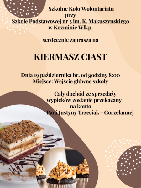 16 października 2023 Aktualności Akcja Charytatywna - Kiermasz Ciast W czwartek 19.10.2023r. zapraszamy wszystkich na Kiermasz Ciast organizowany przez Szkolne Koło Wolontariatu dla Pani Justyny Trzeciak - Gorzelannej zamieszkałej na terenie naszej gminy i zmagającej się... Czytaj więcej