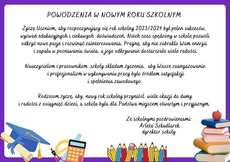 05 września 2023 Aktualności WITAJCIE W SZKOLE PIERWSZAKI! ,,Idę do szkoły, a ze mną przyjaciele, idę wesoło, bo przygód czeka wiele... " 04 września rozpoczął się nowy rok szkolny i jak co roku powitaliśmy pierwszoklasistów. Pierwszy dzień szkoły... Czytaj więcej