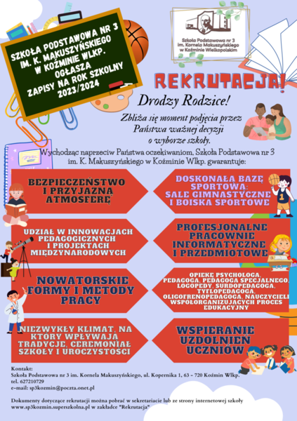17 lutego 2023 Aktualności Drzwi otwarte 17 lutego rodzice oraz ich dzieci, mające w nowym roku szkolnym podjąć edukację w klasie pierwszej, mogli zobaczyć, co kryją szkolne mury „Trójki”. A kryją wiele: wspaniałą atmosferę,... Czytaj więcej